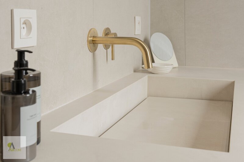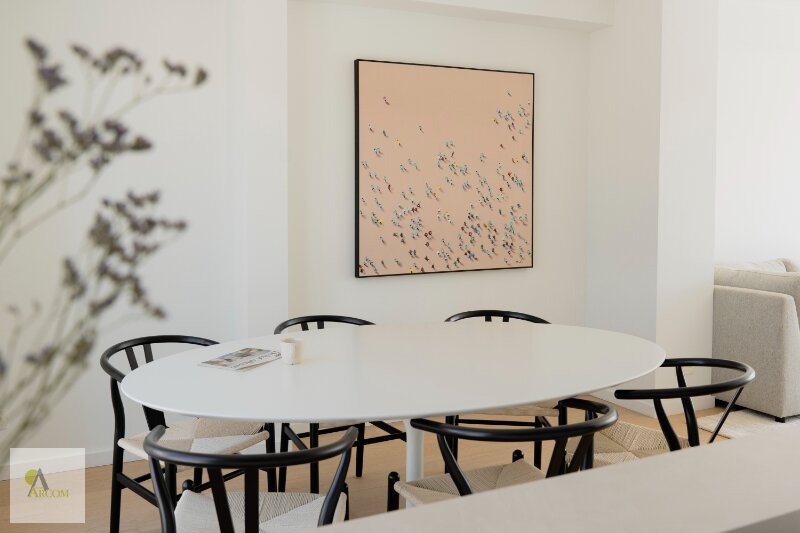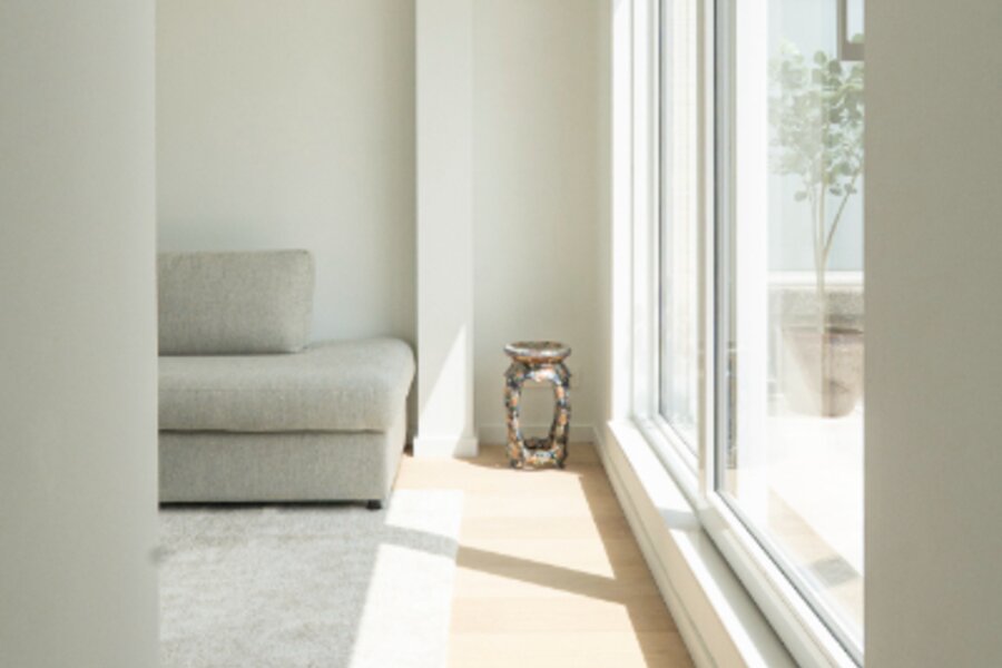 Het interieur is strak en minimalistisch, en combineert tijdloze kwaliteitsmaterialen met zeer zachte tinten