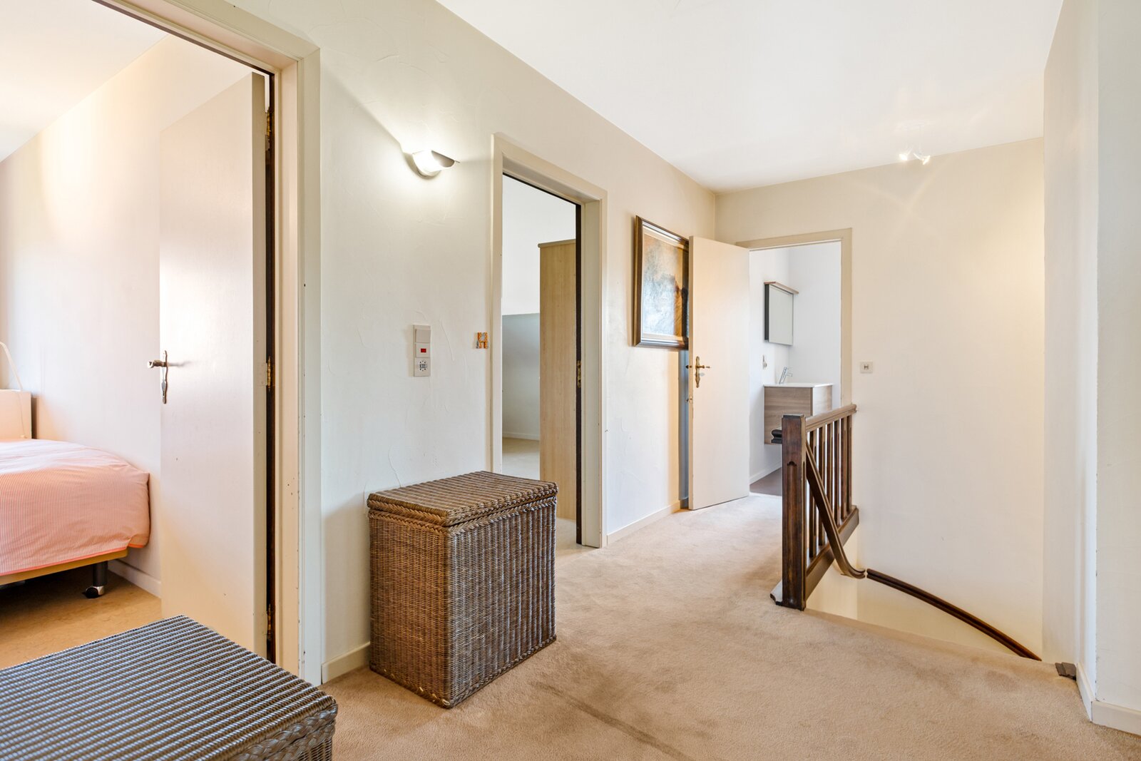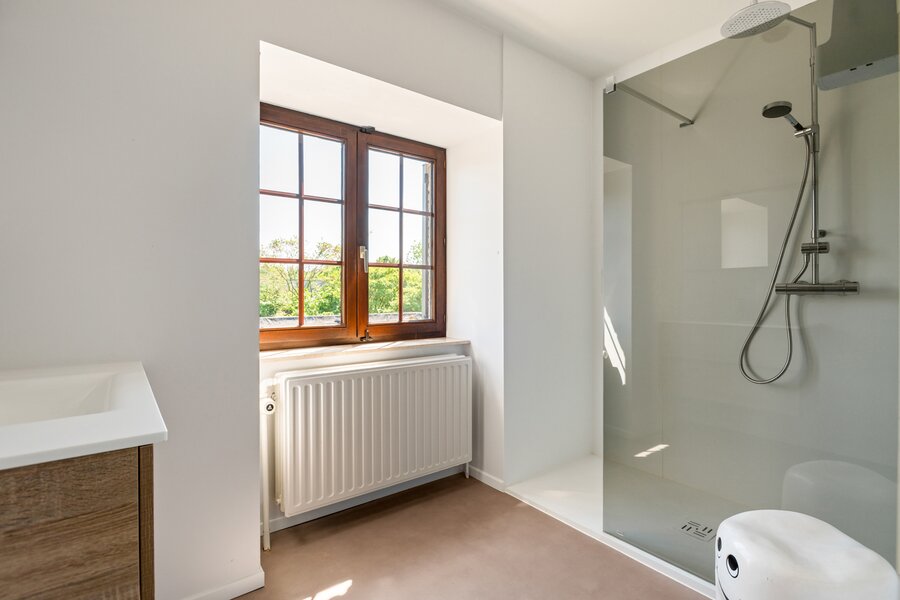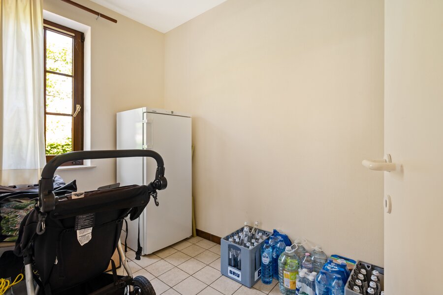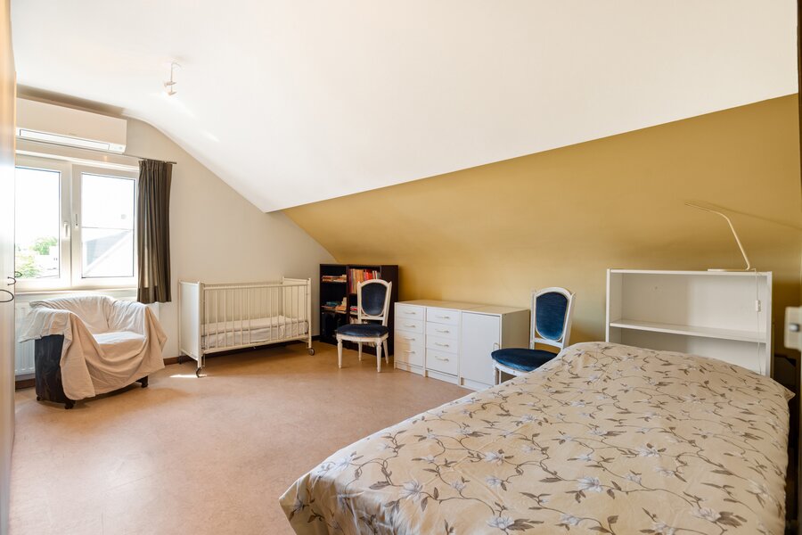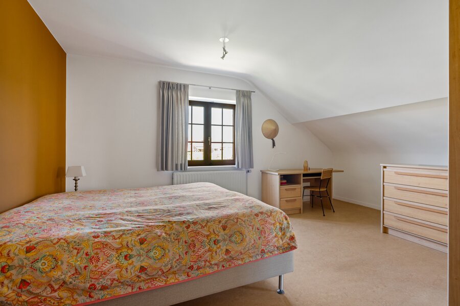 Op de verdieping bevinden zich vier volwaardige slaapkamers, een badkamer, een aparte douchekamer, en via een trap bereikt u de stockagezolder – ideaal voor extra opbergruimte. De woning is bovendien volledig onderkelderd met een kelderruimte van 190 m², die talloze mogelijkheden biedt.