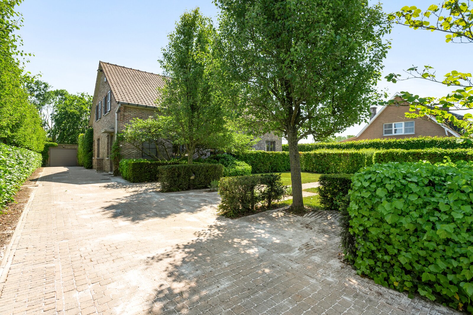 Garage-bijgebouw en ruime parking.