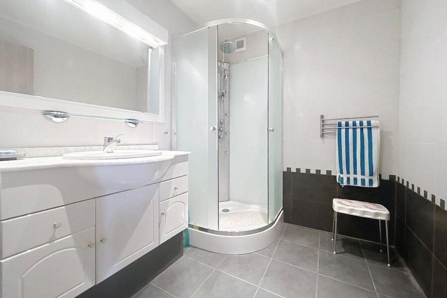 • Ingerichte badkamer met ligbad, inloopdouche, dubbele wastafel, toilet en wasvoorzieningen
