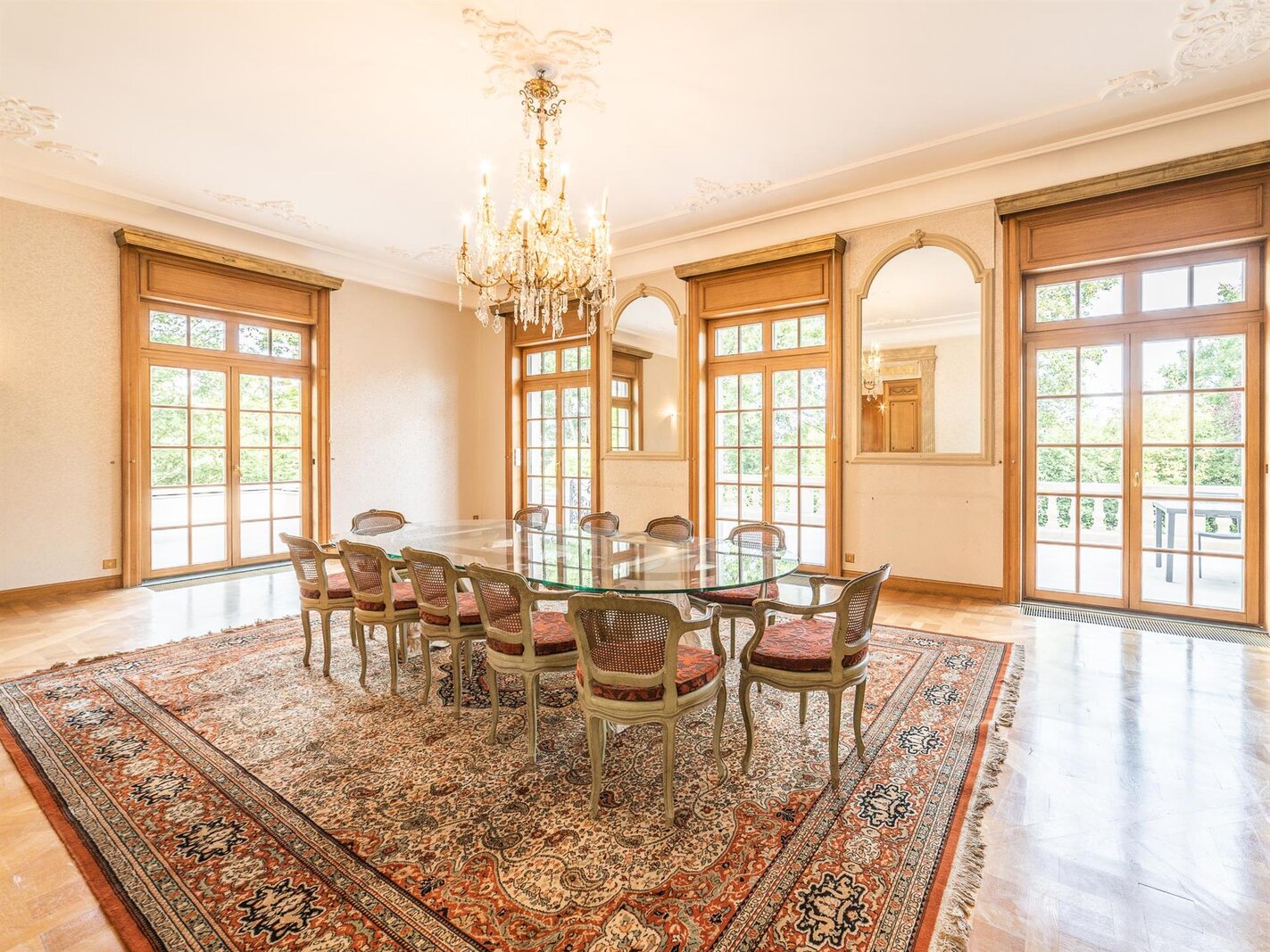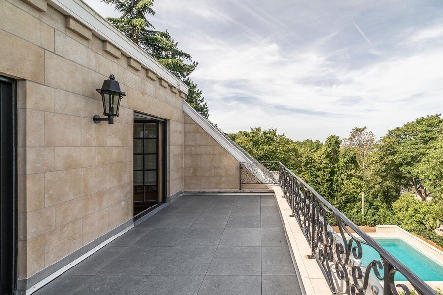 Completely renovated by 3ème Bureau, it offers a gross floor area of approx. 1,300 m². The house opens onto a ceremonial entrance hall with mezzanine. The ground floor features a vast panelled lounge, a VIP dining room and a smaller private dining room, a sitting room, a ‘La Cornue’ professional kitchen and a study. Upstairs is the master suite with bedroom, bathroom and dressing room, and 5 other suites, each with bedroom and private bathroom. A caretaker's lodge with a lounge, two bedrooms and a bathroom completes the complex. The basement includes numerous cellars, a wine cellar, a multi-purpose room and a double garage.