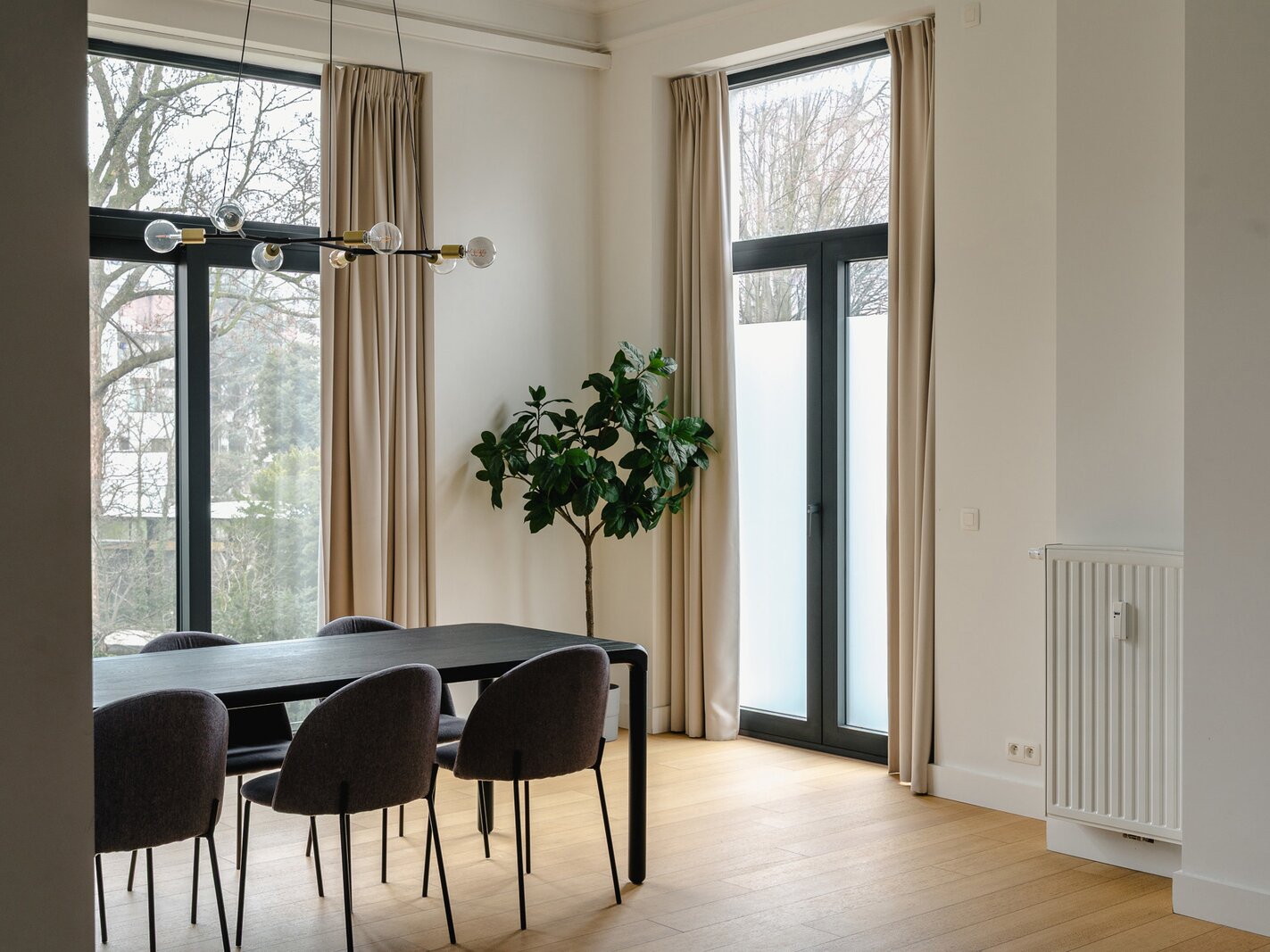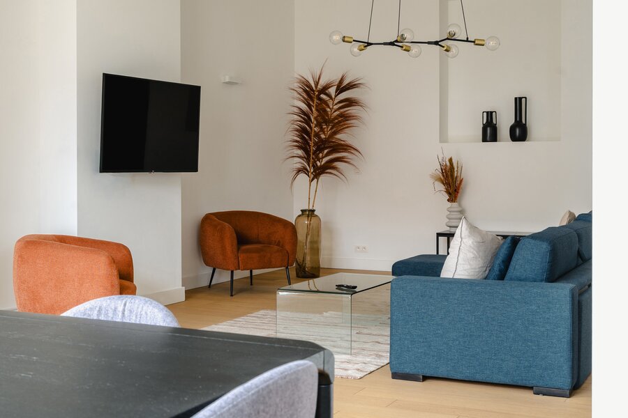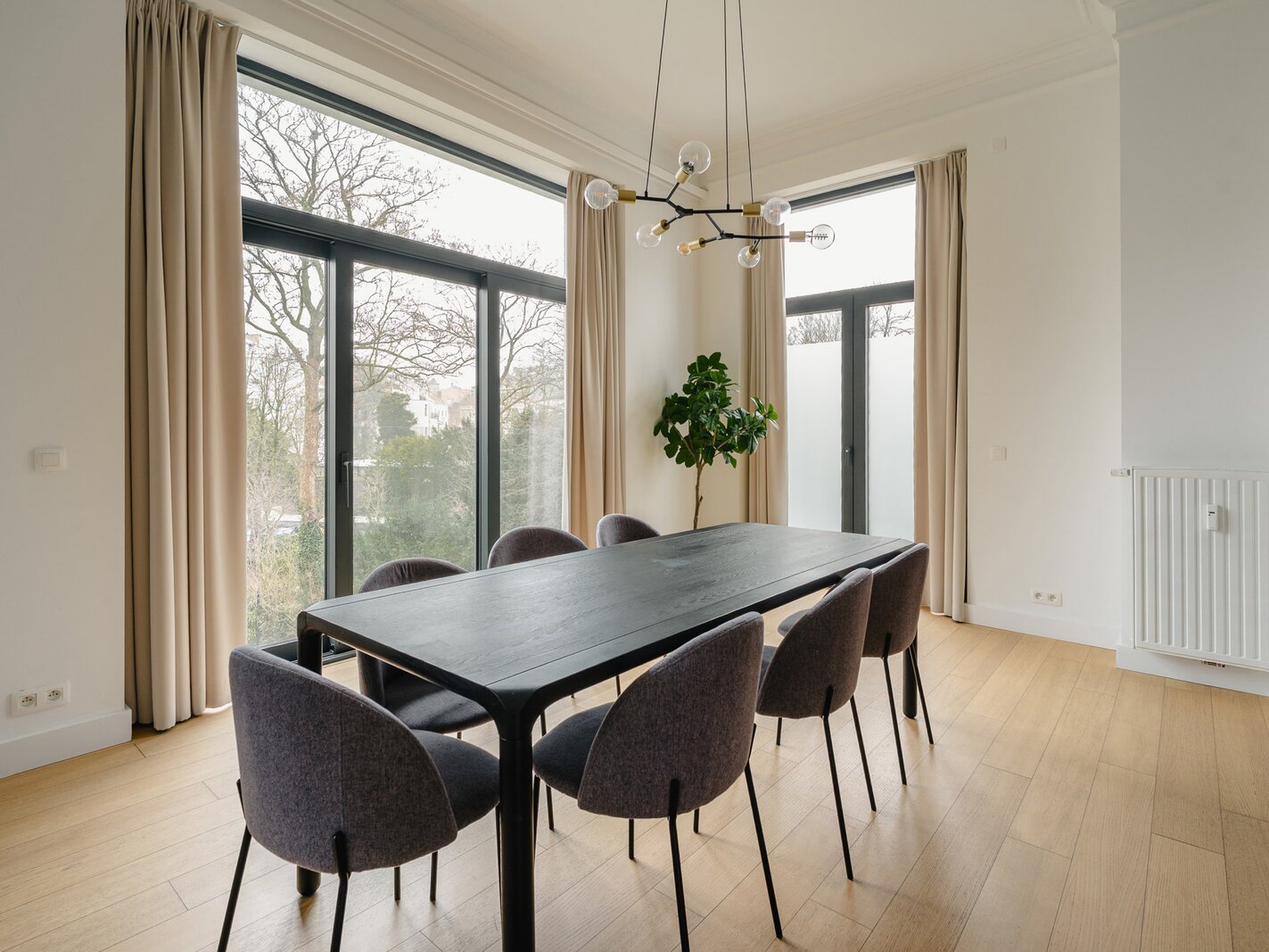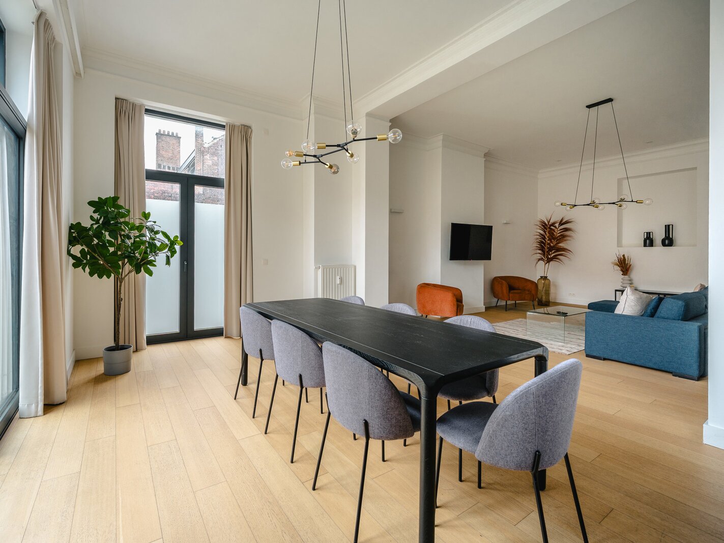 Ideally located between Place Stéphanie and Place du Châtelain, close to shops and public transport, in a fully renovated 1907 Renaissance-inspired Beaux-Arts house, furnished apartment with a gross surface area according to PEB of ± 174 m² offering three bedrooms.