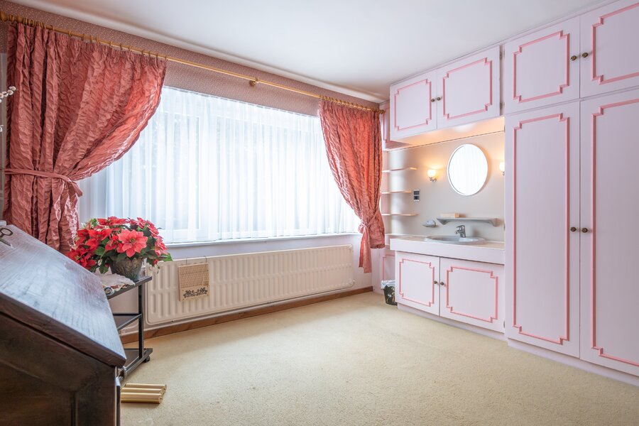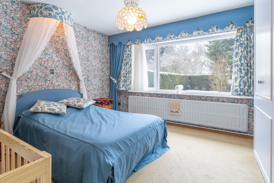 Dit huis, gebouwd in 1975, heeft een indrukwekkende bewoonbare oppervlakte van ± 450 m², met ruime gelijkvloerse vertrekken en veel vrijheid om het naar eigen smaak in te richten. Het bestaat uit vier slaapkamers, royale lichte leefruimtes en een dubbele garage.