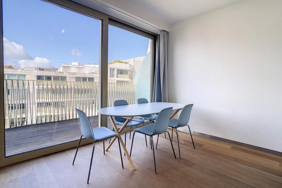 In a luxury residence with contemporary and modern lines, this magnificent penthouse has a total surface area of ± 105 m² and a terrace of ± 13 m². You will be charmed by the quality of the finishes, its amenities, its tranquility, its light, and its layout.