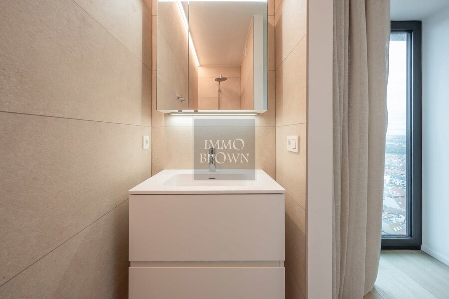 This duplex is located in the iconic Heldentoren, designed by the renowned architecture firm Neutelings Riedijk Architects and developed by SALT and DVLP. The project has also been nominated for the Belgian Construction Awards 2025 in the category Architecture Award, underlining the exceptional architectural quality and presence of the building.