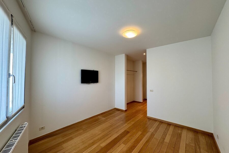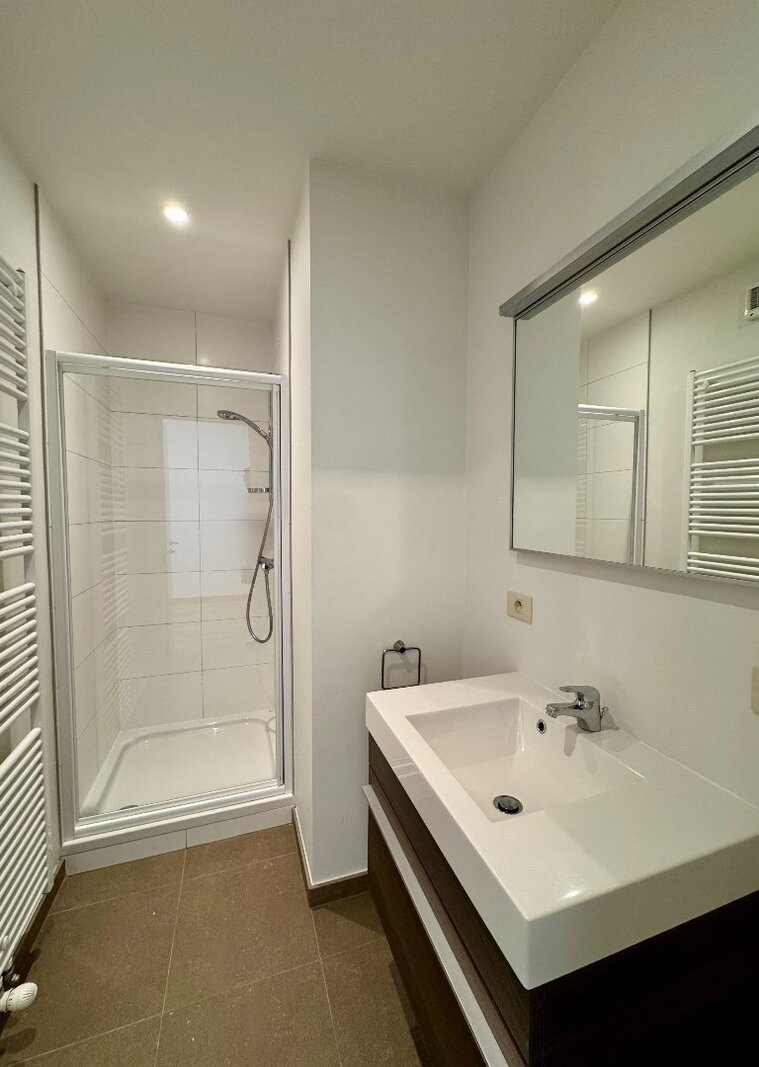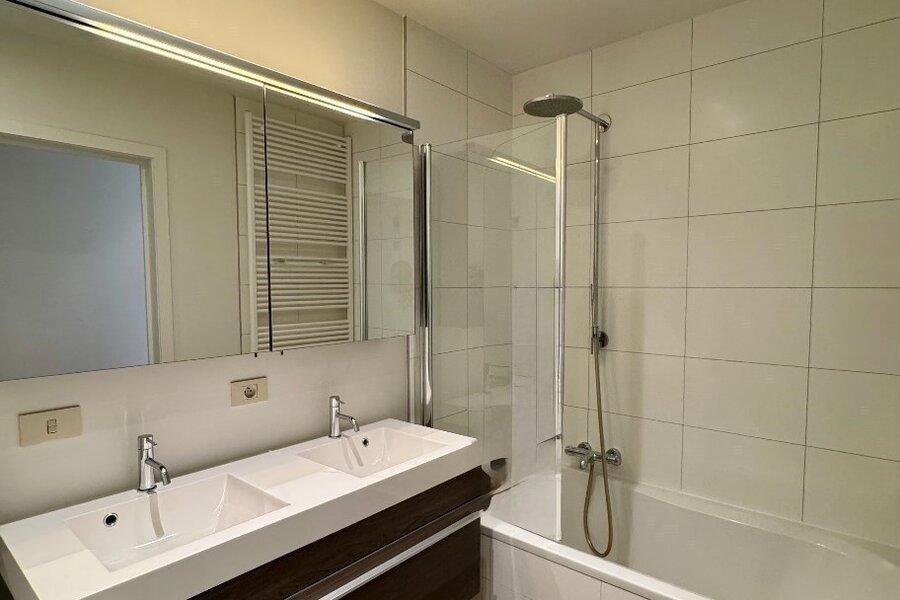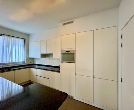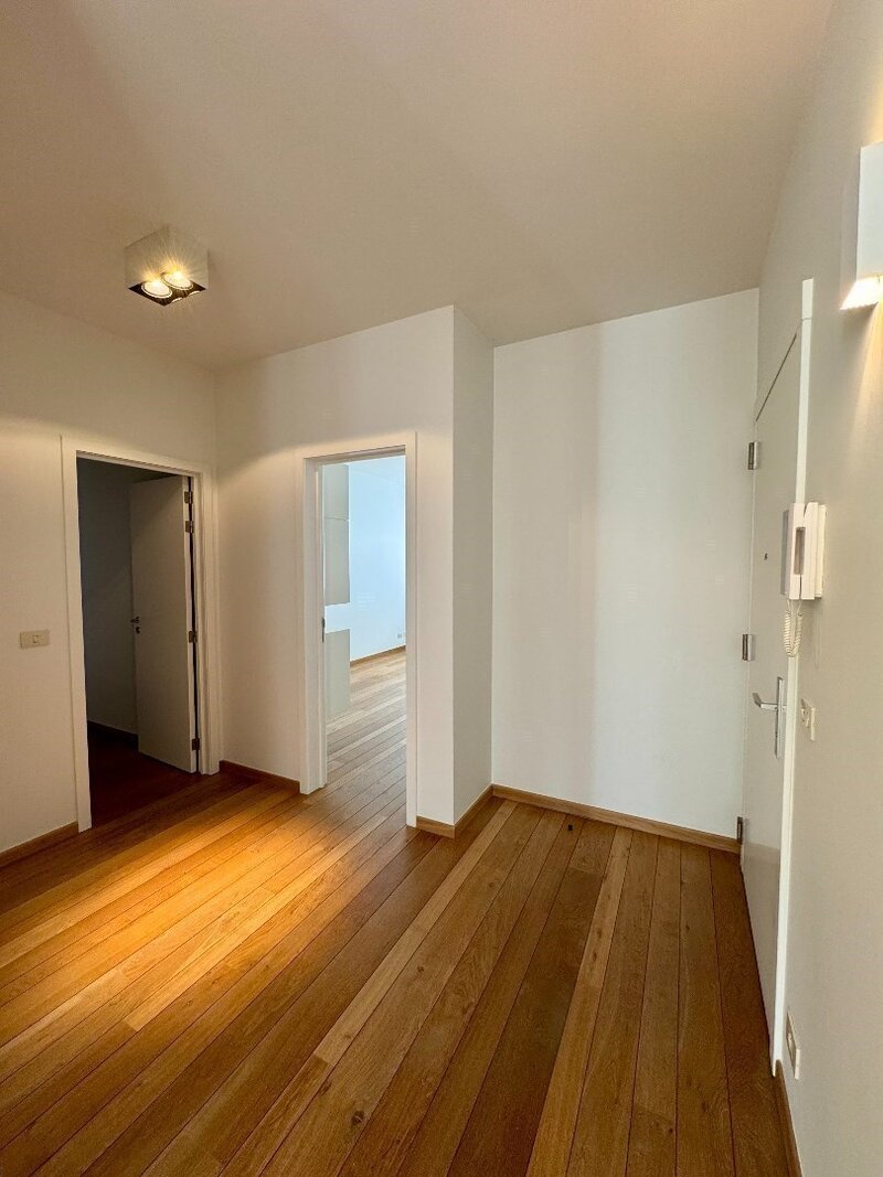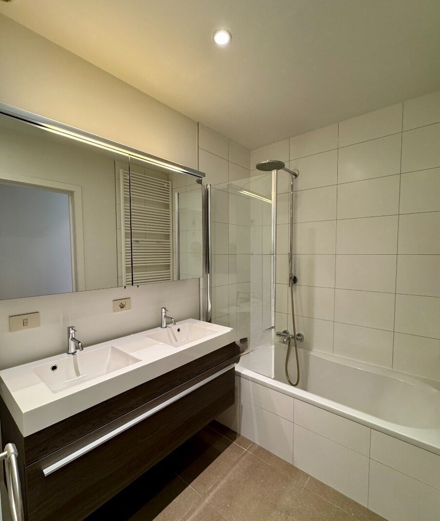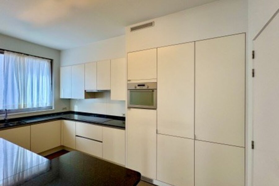 Bij binnenkomst word je verwelkomd door een elegante inkomhal met vestiaire en een apart gastentoilet. De volledig uitgeruste keuken combineert functionaliteit met stijl en sluit naadloos aan bij de warme, uitnodigende sfeer van het appartement. Een aparte berging met aansluiting voor wasmachine maakt het geheel praktisch.