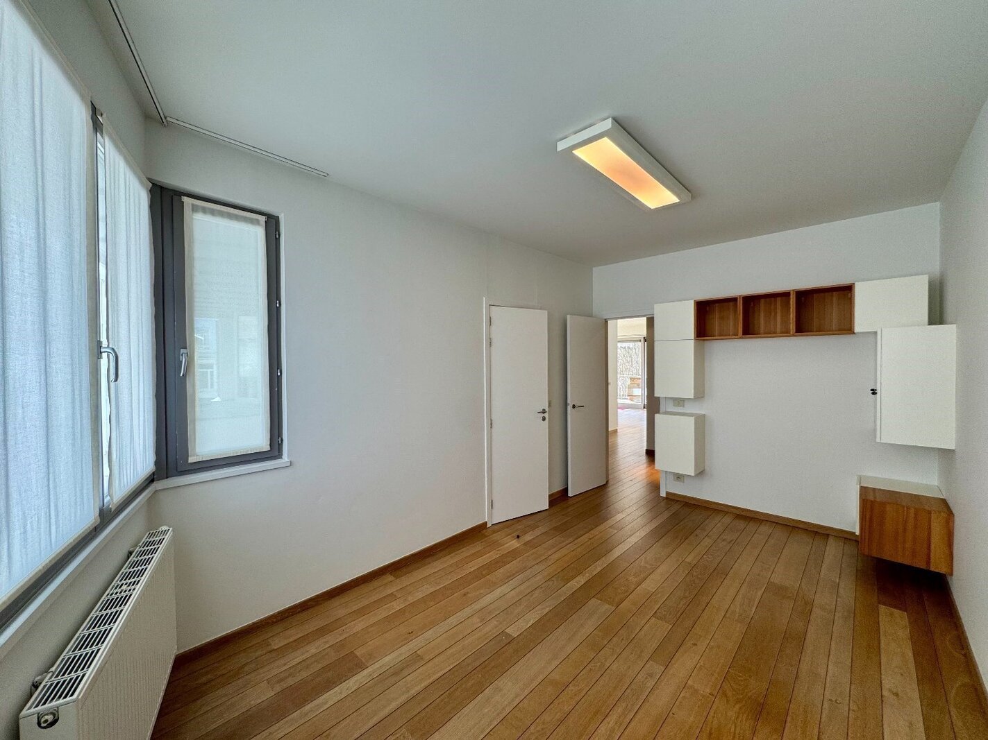 Het appartement beschikt over twee volwaardige slaapkamers, elk met een eigen badkamer, voor maximale privacy en comfort. De tijdloze parketvloer doorheen het appartement geeft een sfeervolle, elegante touch. Bovendien is er een ruime kelderberging en bestaat de mogelijkheid om een garage aan te kopen voor zorgeloos parkeren.