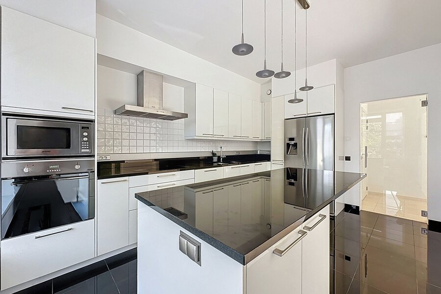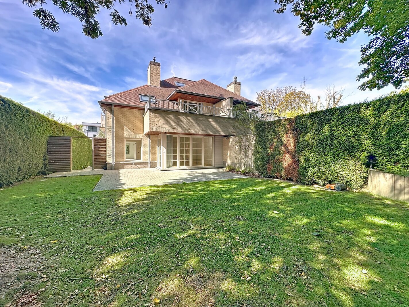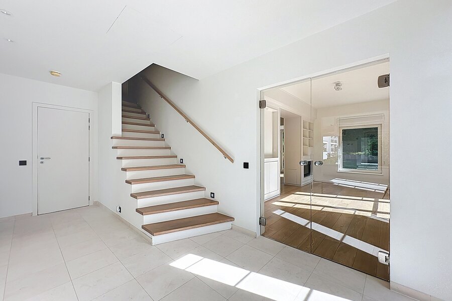 Close to the Prince d'Orange district and Place Saint-Job, superb 3-frontage house with a total surface area of ± 289 m² built in 2010. It consists of a large entrance hall with a cloakroom and a water closet, a large living room with a gas cassette (± 46.30 m²), a fully equipped kitchen (± 17.40 m²), a pretty dining room (± 19.15 m²), a night hall, 4 beautiful bedrooms (± 27.80 m², ± 18.55 m², ± 15.95 m² and ± 15.85 m²) including the master suite with its dressing area and its bathroom and shower and 2 shower rooms. Beautiful terrace accessible from the master suite as well as a pretty terrace overlooking a magnificent garden (± 115 m²) facing South East. Cellars including a wine cellar and a double garage with several spaces in front of the house. The house has a Verisure alarm, double glazing, double flow ventilation, a water softener and air conditioning. Charges: 100 €/month (Internet/television package). PEB C-. To discover as soon as possible at Vaneau Lecobel!!