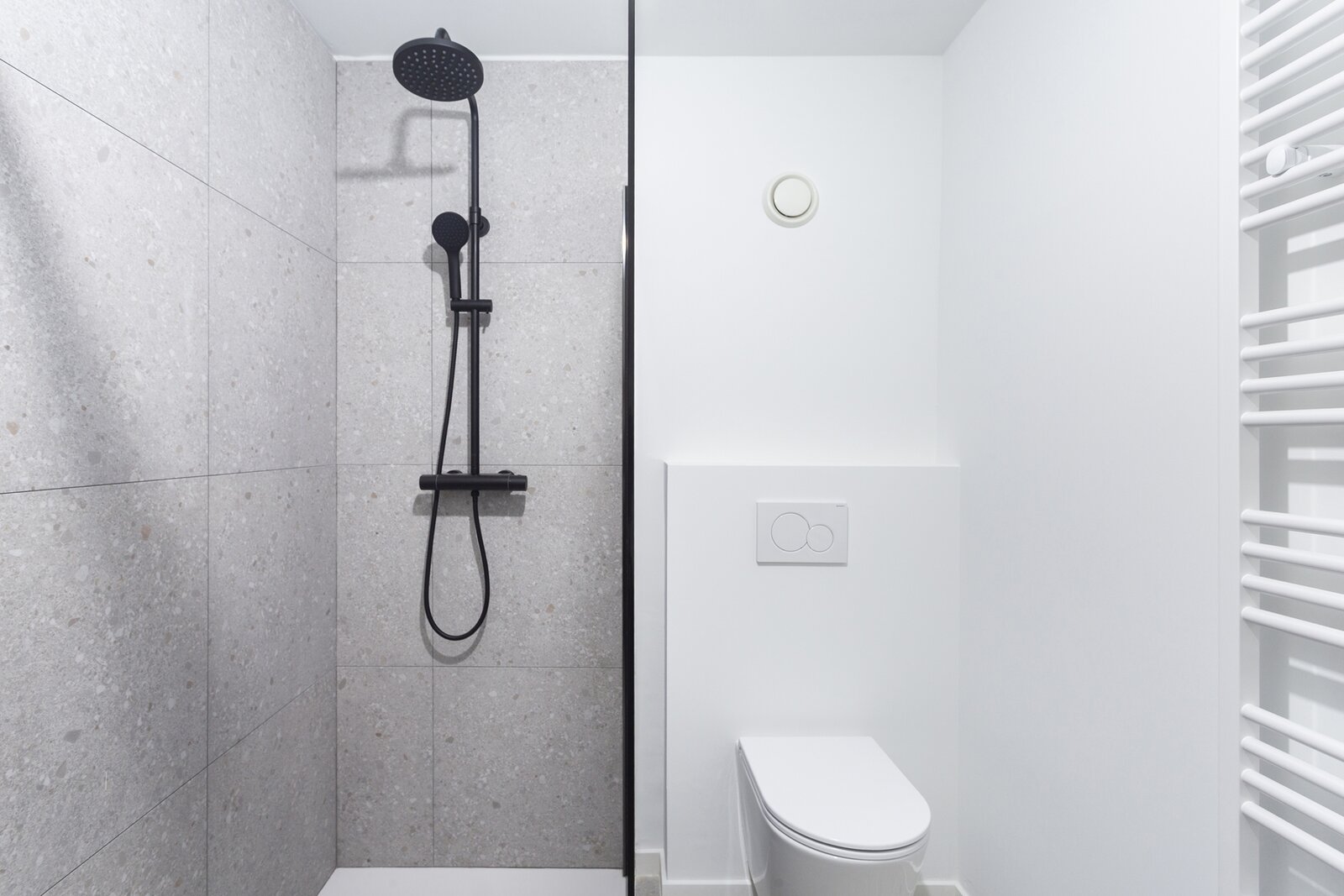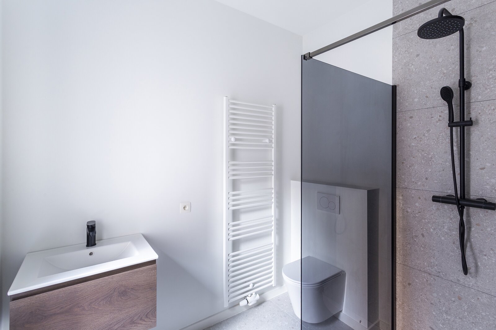 De tweede verdieping beschikt over een ruim terras waar u bij mooi weer in alle rust kan genieten. Daarnaast bevinden zich op dit verdiep twee volwaardige slaapkamers en een badkamer, uitgerust met een inloopdouche.