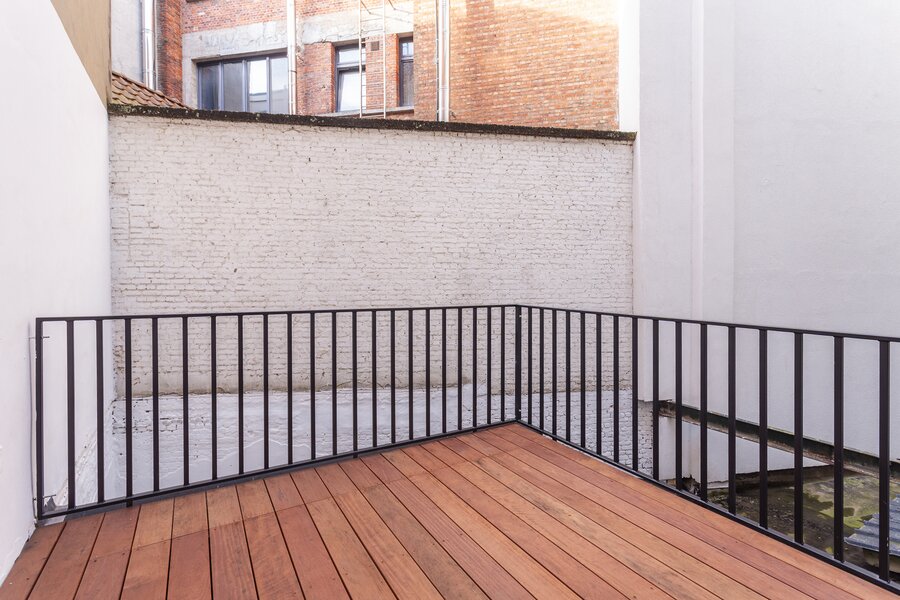 Dit duplexappartement ligt letterlijk aan de voet van de Marnixplaats.