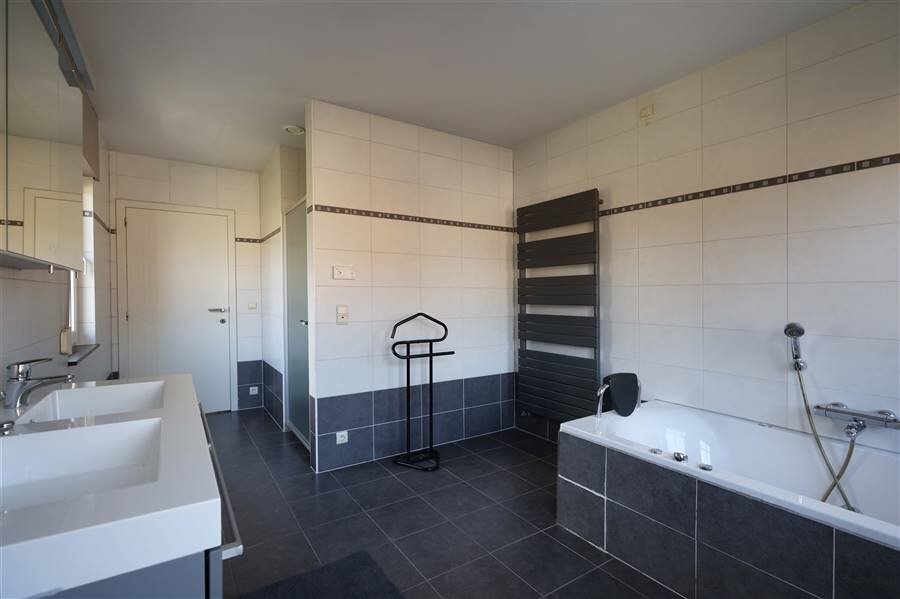 + Riante badkamer met ligbad met bubbel- en lichtfunctie en een inloopdouche