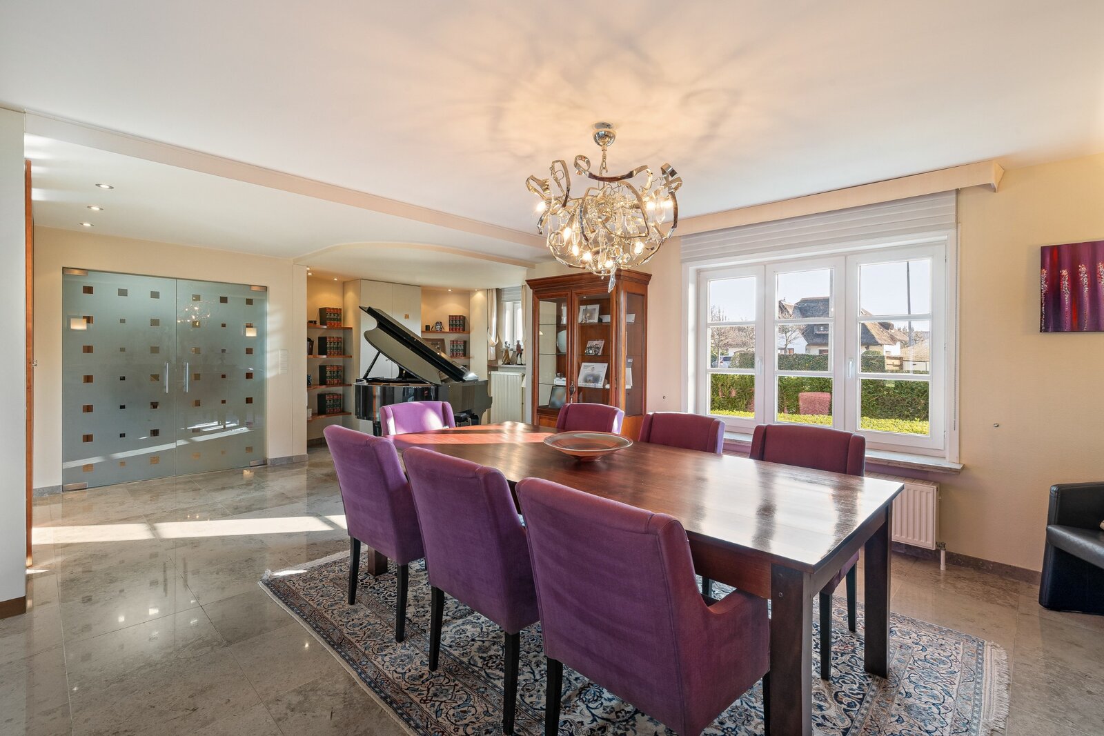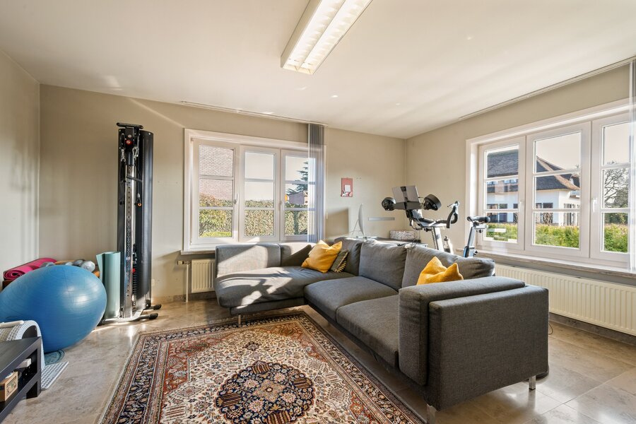 Uniek aan deze villa is de bureauruimte aan de inkomzone, perfect geschikt als professioneel thuiskantoor of praktijkruimte. Zo combineert u wonen en werken zonder in te boeten aan privacy.