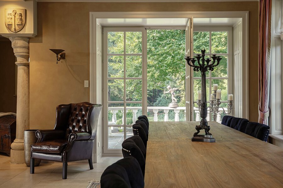 Located on the edge of the magnificent De Kalmthoutse Heide nature reserve, on 63,880 m² of private land, this impressive castle villa, rebuilt in 1997, offers a perfect harmony between classic architecture and contemporary luxury. The estate has a private riding arena and a charming house, making it an exceptional retreat for horse lovers and nature enthusiasts seeking complete privacy.