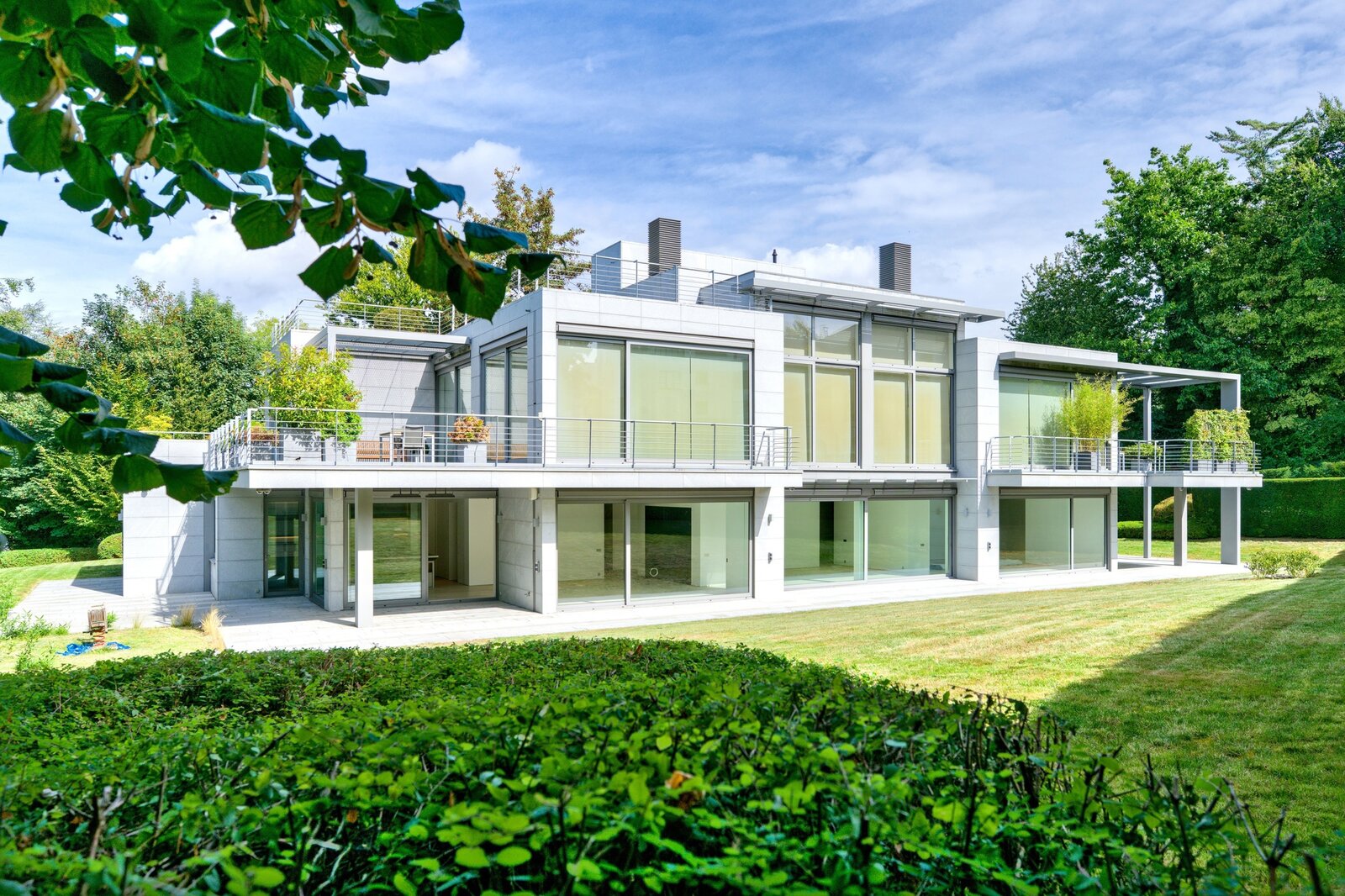 Combining clean lines and high-quality materials, this garden level apartment comprises a large reception area with a living room with an open fireplace, a large separate dining room, a study with a library, a fully equipped kitchen with a breakfast area, a laundry room and a pantry, all opening onto terraces and the ideally oriented garden. The sleeping area offers a master suite with dressing room and bathroom, three other bedrooms with en-suite bathrooms/shower rooms and a separate laundry room. Two double garages and two cellars complete this property.