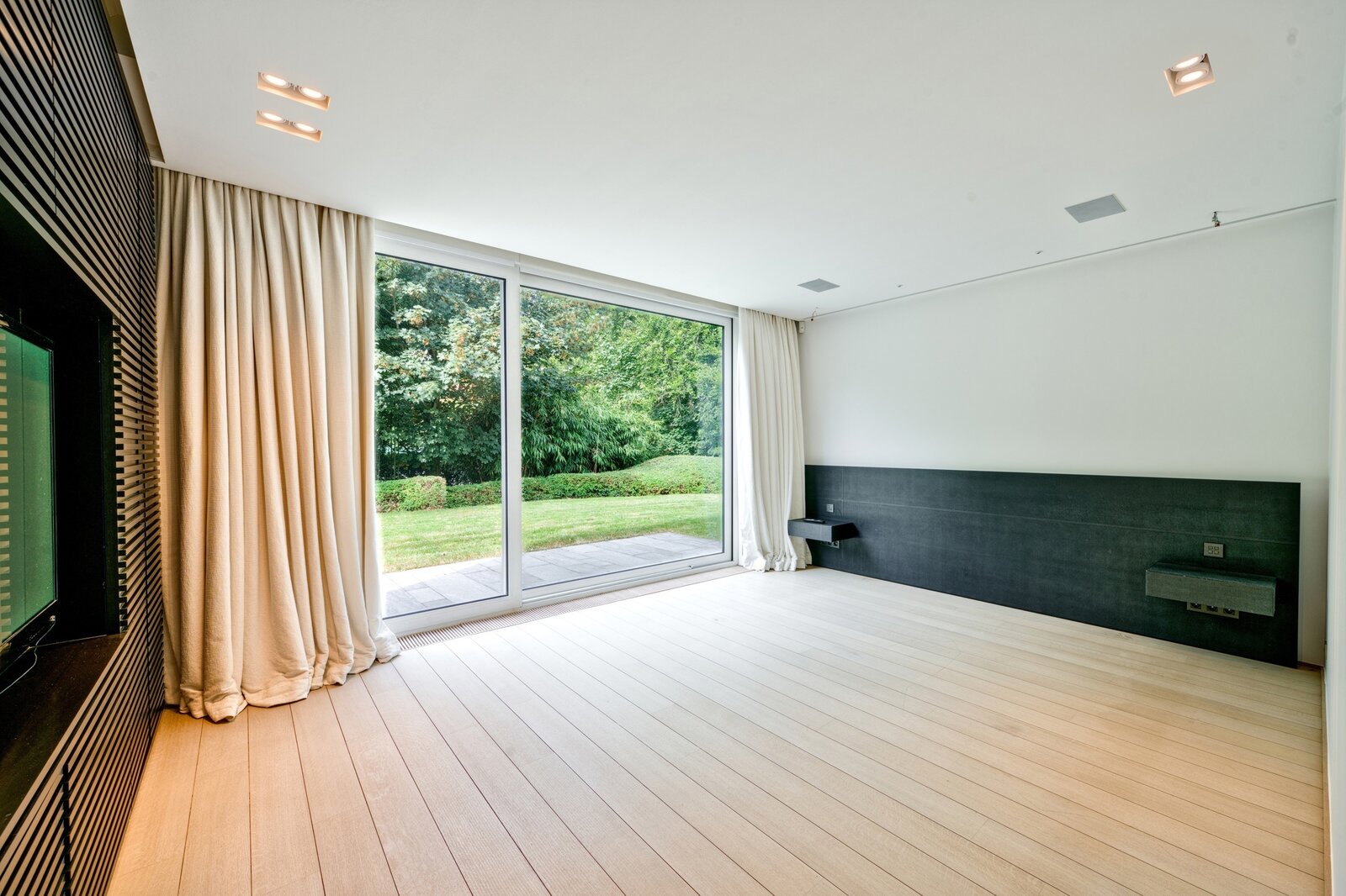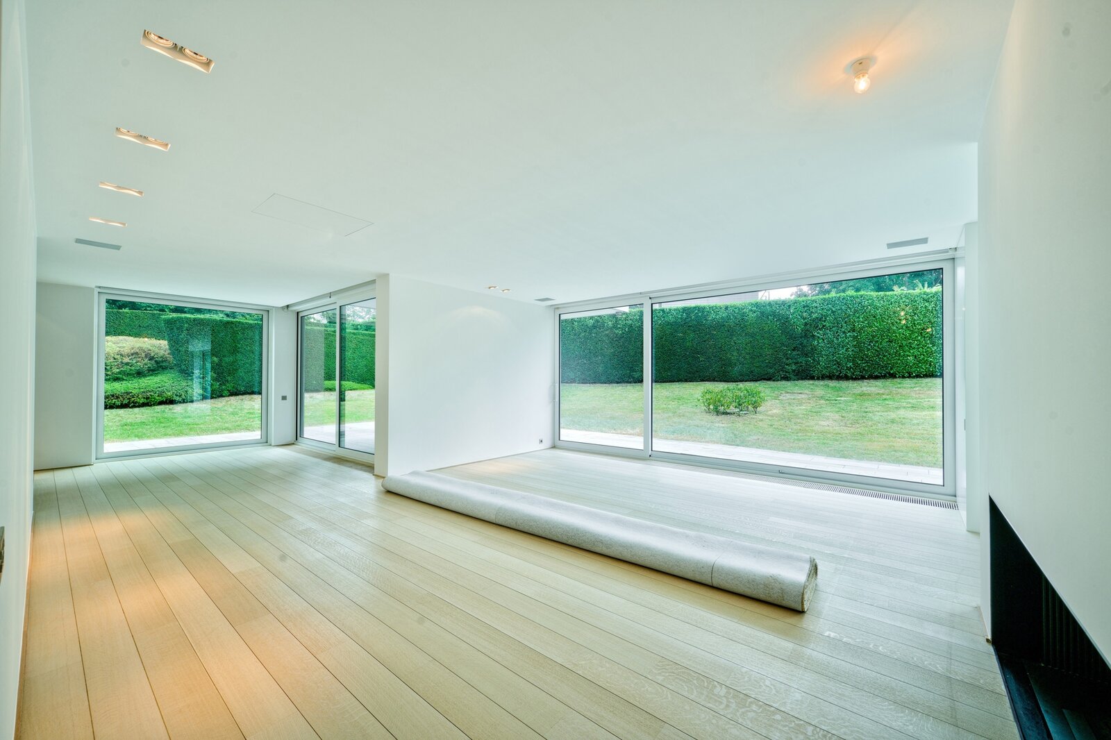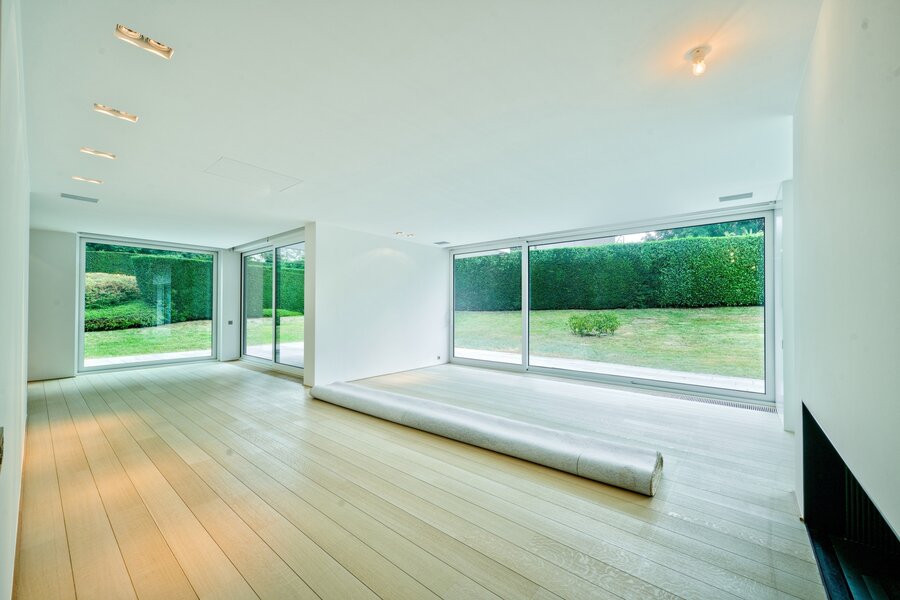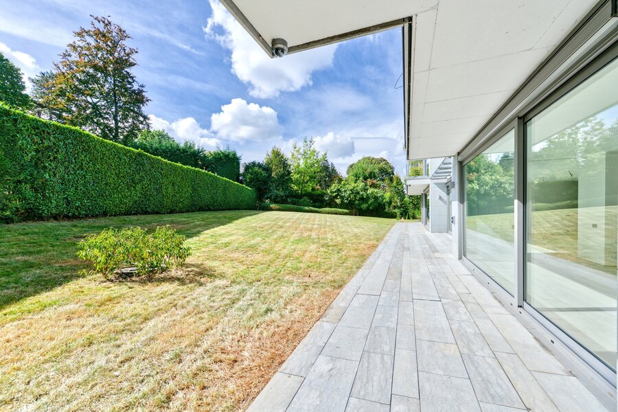 On one of the most prestigious avenues in Uccle and the sought-after Observatoire neighbourhood, tucked away from view, garden-level property offering approximately 440sqm of living space, surrounded by terraces and private gardens covering approximately 3.5 acres, located in a magnificent building designed by renowned architect Marc Corbiau with interior design by Olivier Dwek.