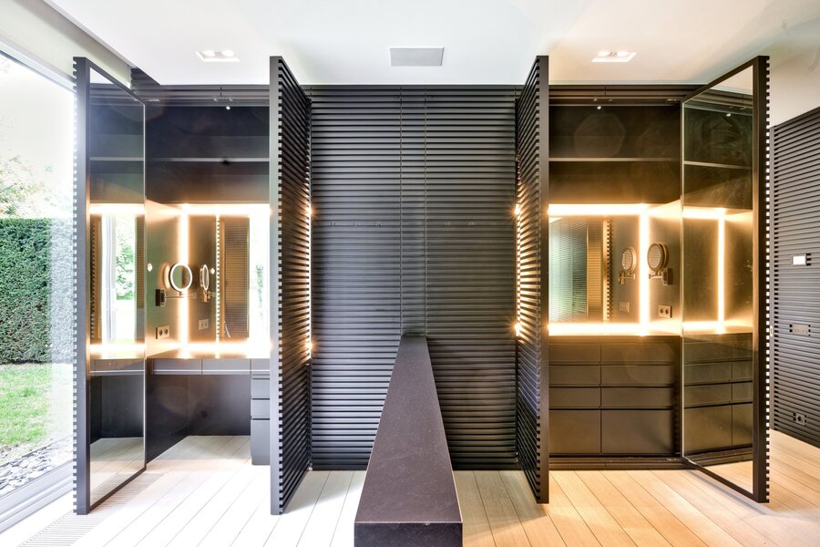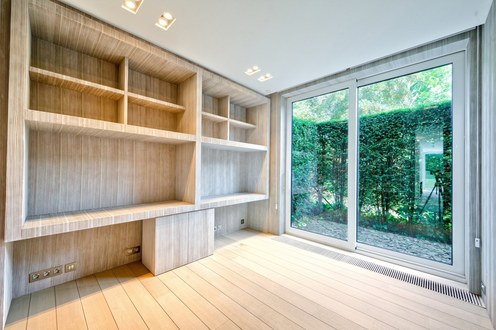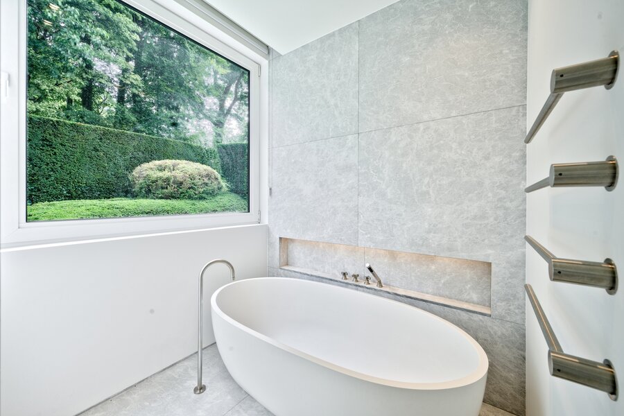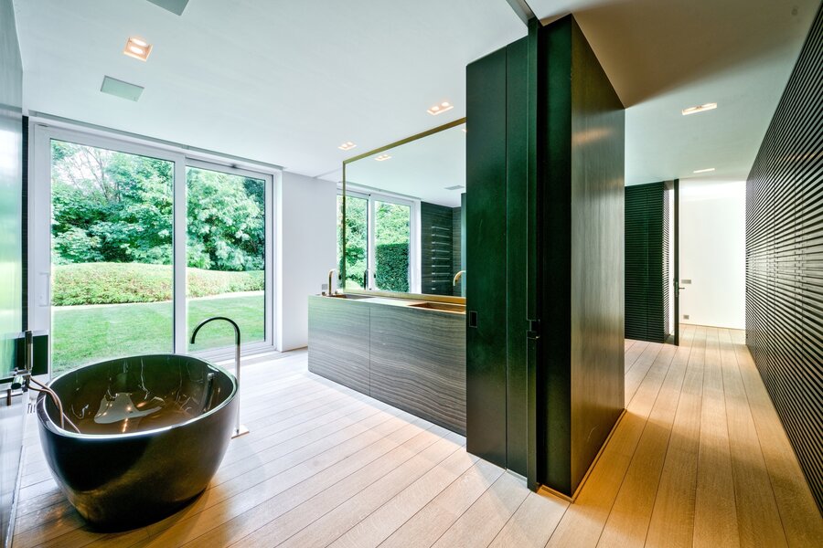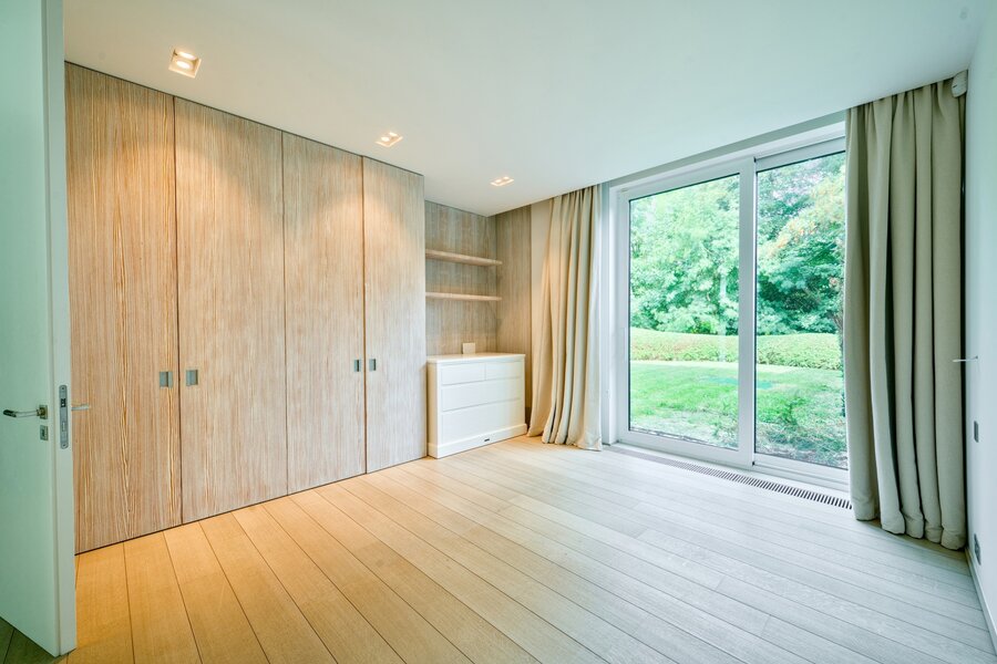 On one of the most prestigious avenues in Uccle and the sought-after Observatoire neighbourhood, tucked away from view, garden-level property offering approximately 440sqm of living space, surrounded by terraces and private gardens covering approximately 3.5 acres, located in a magnificent building designed by renowned architect Marc Corbiau with interior design by Olivier Dwek.