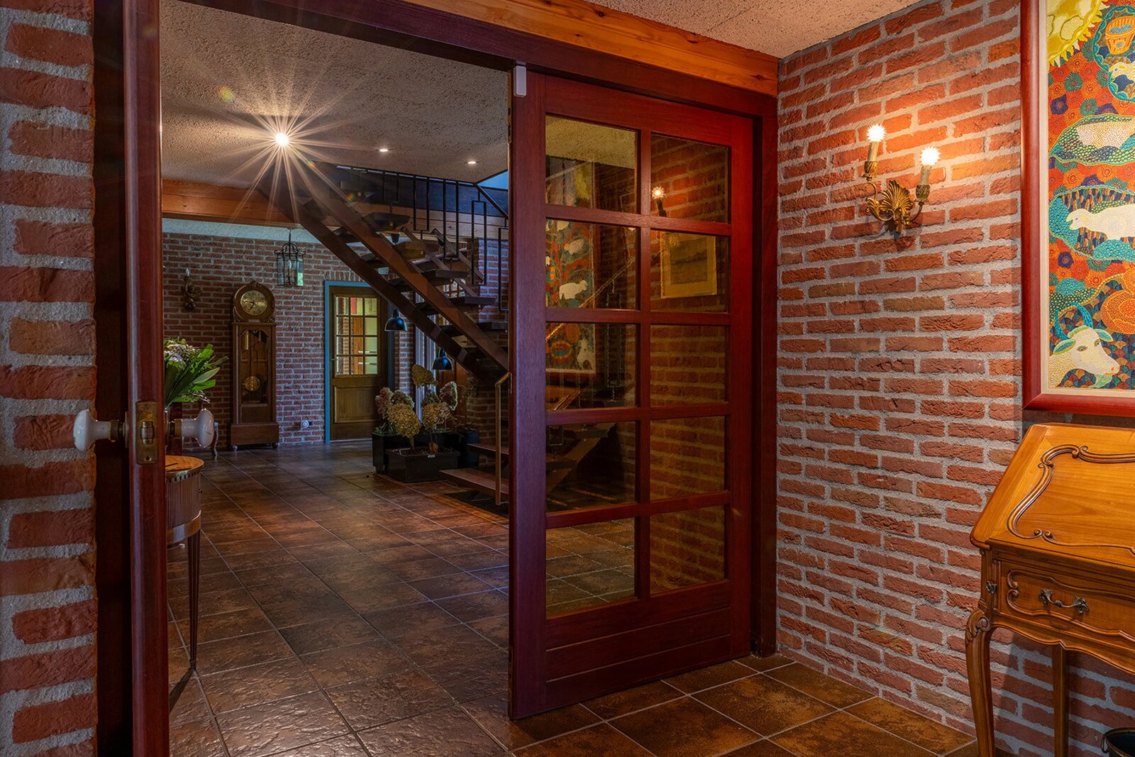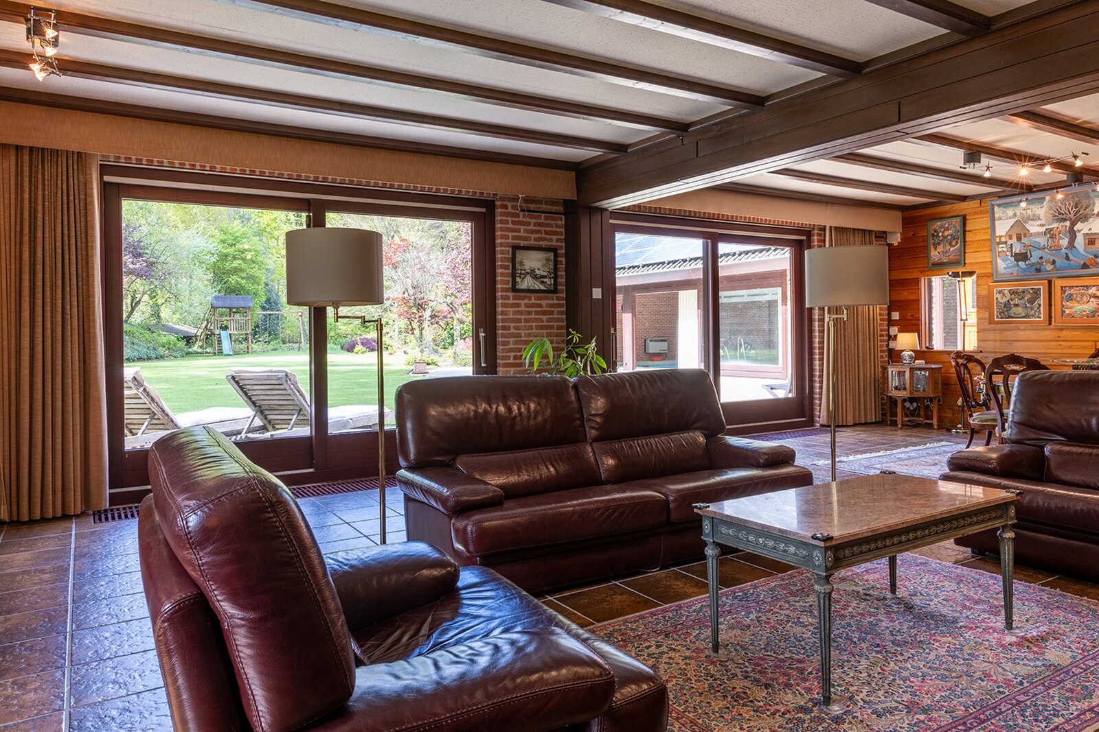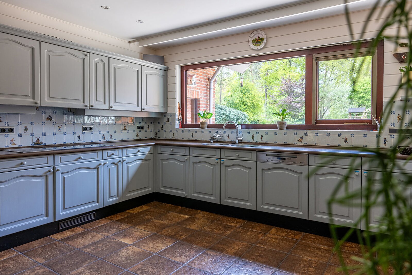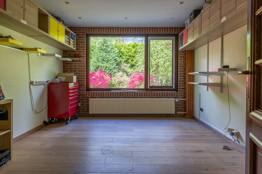 Zeer rustig gelegen villa met binnenzwembad en parkdomein in hartje Kapellenbos Ontdek deze karaktervolle en uiterst ruime gezinswoning op een prachtig zuidwest georiënteerd perceel van maar liefst 6.845 m². De woning biedt een bewoonbare oppervlakte van 693 m², gecombineerd met volledige privacy en een uniek open zicht. Strategisch gelegen nabij het gezellige centrum van Heide, omringd door natuur en fiets- en wandelroutes, en op korte afstand van de golf van Kapellen. Deze kwalitatieve villa, destijds gebouwd door een aannemer voor eigen gebruik, straalt degelijkheid en luxe uit dankzij de hoogwaardige materialen en doordachte indeling. Indeling Gelijkvloers Een stijlvolle inkomhal met vestiaire en gastentoilet verwelkomt u in de woning. De royale leefruimte (64 m²) met open haard geeft rechtstreeks toegang tot de prachtige tuin. Een tweede verlaagde living (54 m²), vandaag ingericht als bureauruimte en home cinema, biedt extra leefcomfort. De volledig uitgeruste leefkeuken (19 m²) is ideaal voor culinaire momenten met familie en vrienden. Verder vindt u een aparte speelkamer, een praktische bijkeuken/wasplaats, en een dubbele garage met automatische poorten. Het absolute paradepaardje is het verwarmd binnenzwembad (4,5 × 8 m) met sauna, douche, toilet en kleedruimte – een wellnessoase in eigen huis. Eerste verdieping De bovenverdieping omvat een master suite (35 m²) met dressing/strijkkamer (20 m²) en luxueuze ensuite badkamer (17 m²). Daarnaast zijn er 4 bijkomende ruime slaapkamers, waarvan één eveneens met ensuite badkamer. Een extra badkamer met douche en dubbele lavabo, samen met een apart nachttoilet, maken dit geheel compleet. Kelder & zolder De kelderverdieping (153 m²) op stahoogte biedt ruimte voor fitness, hobby’s, een wijnkelder en technische installaties. Via een vlizotrap bereikt u de ruime, geïsoleerde bergzolder. Troeven van deze woning Riant perceel van 6.845 m² met prachtig aangelegd tuinpark 693 m² bewoonbare oppervlakte met royale leefruimtes Binnenzwembad met sauna en wellnessfaciliteiten 5 ruime slaapkamers, 3 badkamers, meerdere bureauruimtes Dubbele garage + ruime kelder Absolute privacy én open zicht Centrale, doch groene ligging nabij Heide, natuurgebied en golf van Kapellen Een unieke kans Deze exclusieve villa combineert ruimte, privacy en luxe op een toplocatie in Kapellenbos. Een droomwoning voor wie houdt van stijlvol wonen, met alle comfort binnen handbereik.