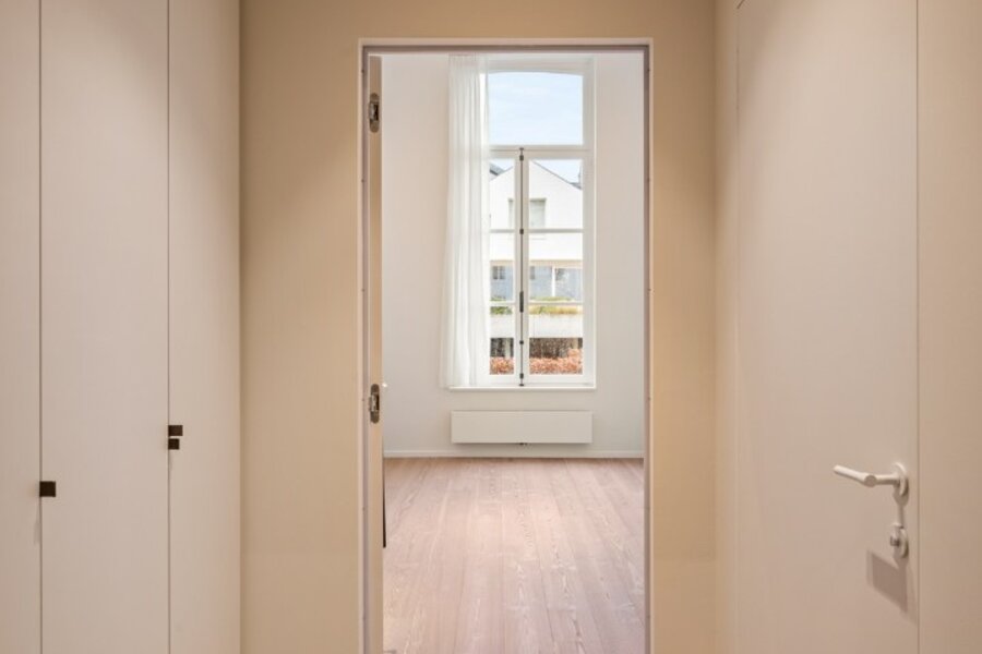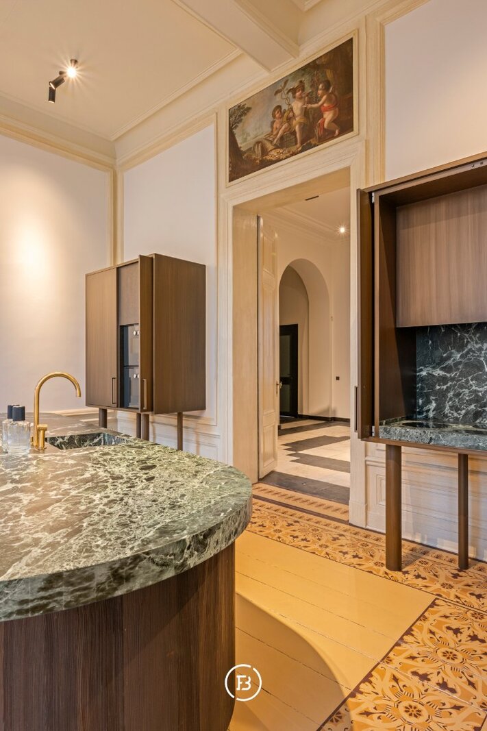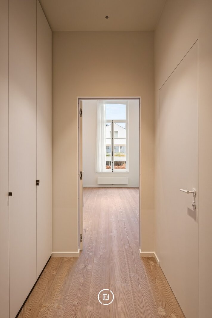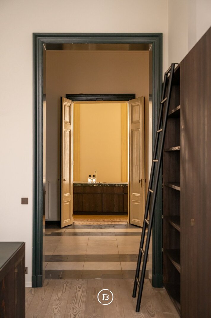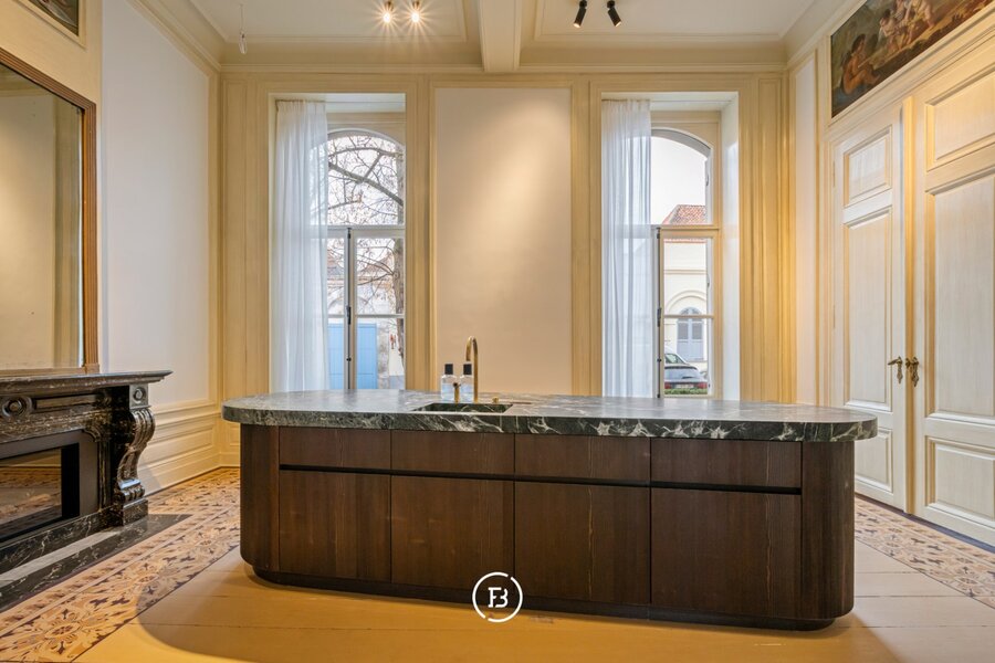 Tussen de mooiste kerk van Brugge, de Walburgakerk, en het Europacollege situeert zich dit exclusief woonappartement. Het geniet royale woongelegenheden, hoge plafonds, historische elementen zoals statige molurus en lederen wandbekleding. Het is niet moeilijk om lyrisch te worden over de troeven van deze monumentale eigendom.