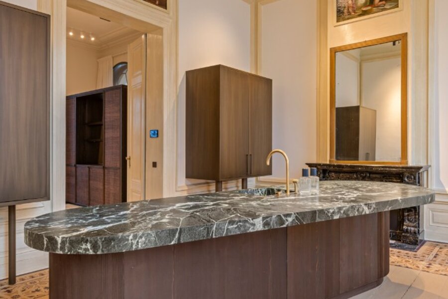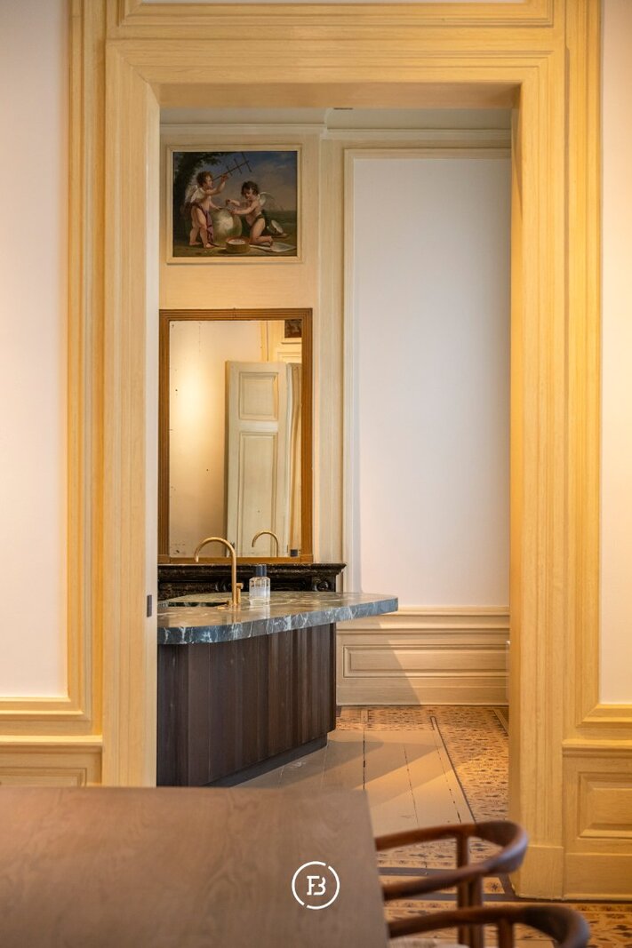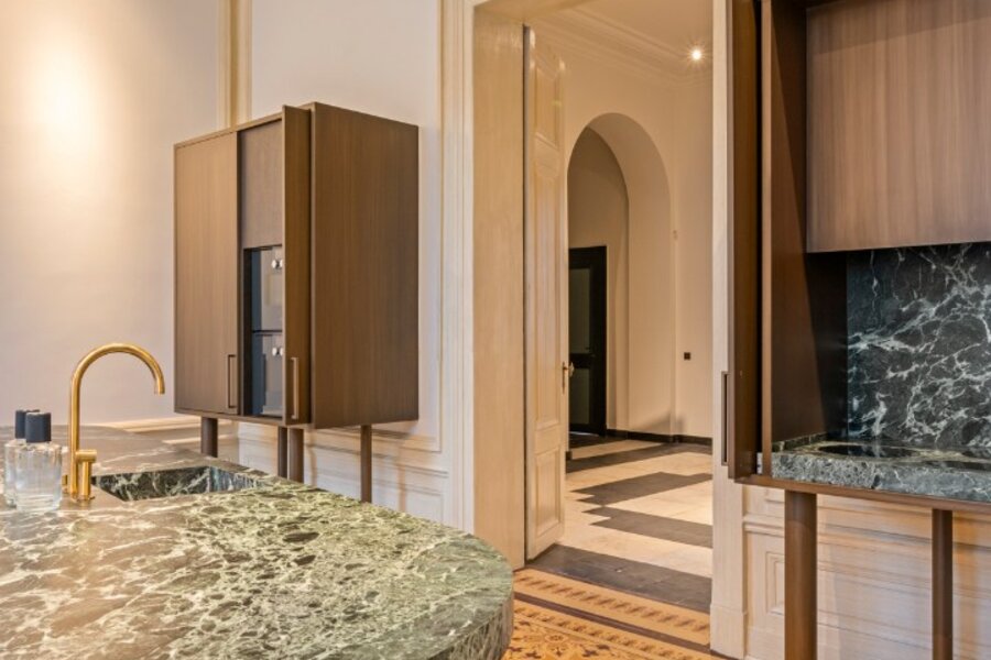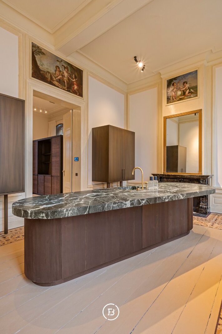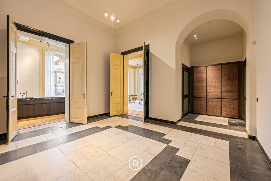Tussen de mooiste kerk van Brugge, de Walburgakerk, en het Europacollege situeert zich dit exclusief woonappartement. Het geniet royale woongelegenheden, hoge plafonds, historische elementen zoals statige molurus en lederen wandbekleding. Het is niet moeilijk om lyrisch te worden over de troeven van deze monumentale eigendom.