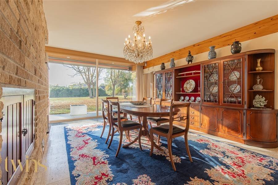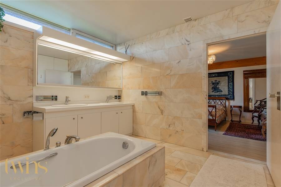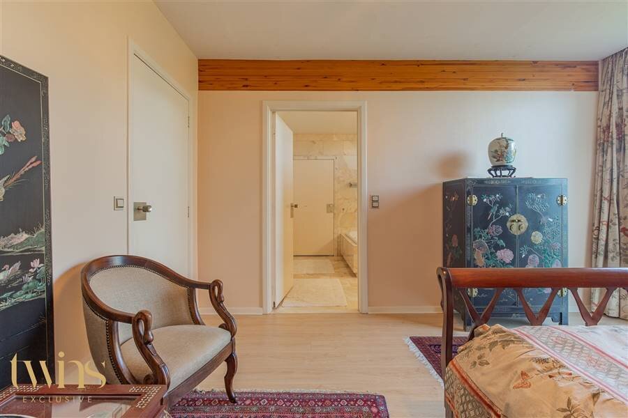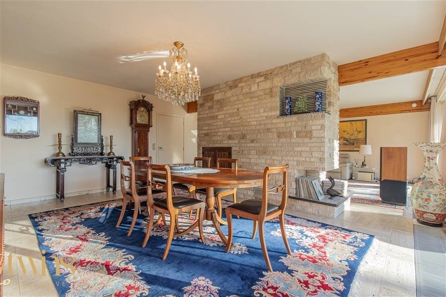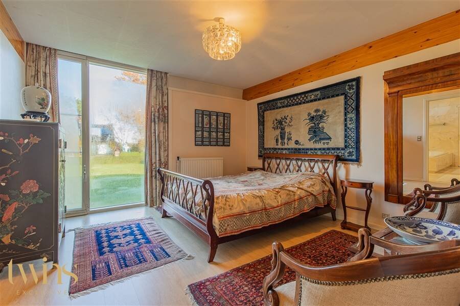 Op een uitstekende en rustige locatie te Hamme bevindt zich deze architecturale villa-bungalow (Bj. 1970) met volwaardig gelijkvloers wonen, gelegen op een royaal perceel van 38 are 69 ca met een straatbreedte van ca. 52 meter. Deze eigendom combineert ruimte, comfort en privacy met een hoogwaardige afwerking en een uitstekende oriëntatie. De woning beschikt over een bebouwde oppervlakte van ca. 282 m² en wordt omringd door een prachtig aangelegde, volledig zuidgerichte tuin en terras, waar u in alle rust kan genieten van een uniek open zicht. Via de riante en indrukwekkende inkomhal betreedt u de woning. De ruime en lichtrijke woon- en leefruimte straalt klasse en warmte uit, mede dankzij de ingebouwde houtkachel en het uitzonderlijke zicht op de tuin. Aansluitend bevindt zich een extra eetruimte met volledig geïnstalleerde keuken, ideaal voor gezellige ontbijtmomenten met zicht op de tuin. Verder is er een ruime, koele berging. Deze topper telt vier volwaardige slaapkamers, waaronder een master bedroom met ensuite badkamer. Deze luxueuze badkamer is uitgevoerd in natuursteen en voorzien van een volledig uitbekleed ligbad en een dubbel badmeubel. Daarnaast beschikt men over een tweede douchekamer, wat het wooncomfort voor gezinnen of gasten aanzienlijk verhoogt. Twee van de slaapkamers beschikken over ingemaakte kasten. Daarnaast is er een bureauruimte die eveneens kan dienen als vijfde slaapkamer, hobby- of polyvalente ruimte. De woning beschikt over een inpandige, ruime garage met vernieuwde sectionale poort, een brede verharde oprit met plaats voor meerdere wagens én een extra aparte garage. Ideaal voor wie nood heeft aan extra opslag of hobbyruimte.
