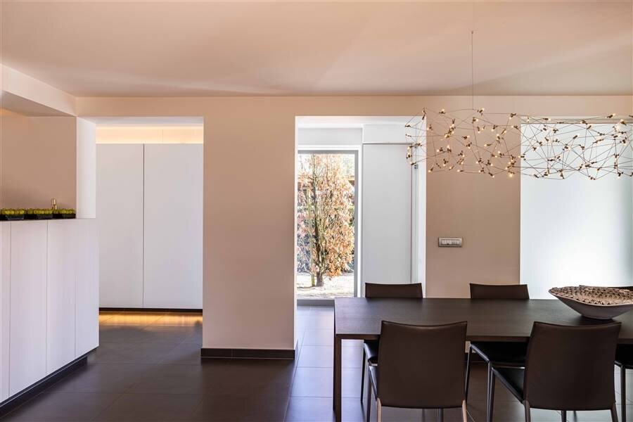Binnenin geniet u van ca. 300 m² bewoonbare oppervlakte, afgewerkt met kwalitatieve en duurzame materialen en maatwerk, na een geslaagde totaalrenovatie in 2009. Het gelijkvloers omvat ruime, harmonieus in elkaar overvloeiende leefruimtes met salon (parket), eetkamer en volledig uitgeruste keuken (Miele toestellen), aangevuld met een leeshoek met zicht op de tuin en een praktisch poolhouse met douche.