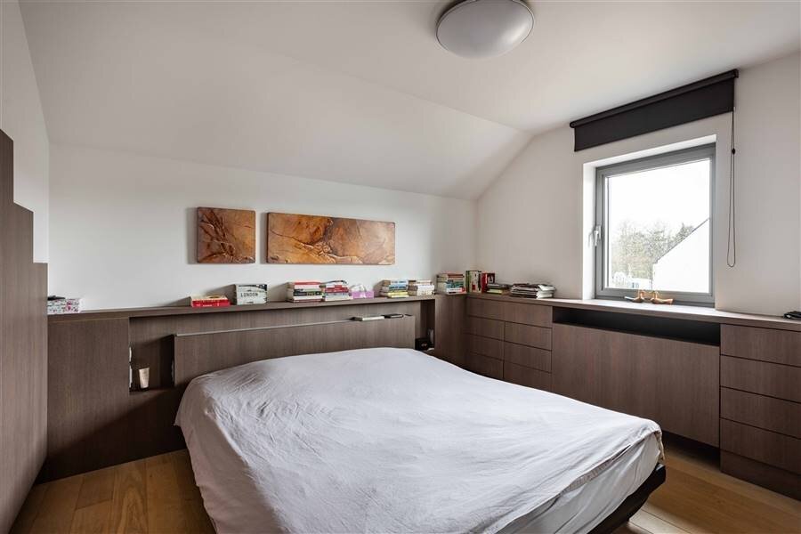 Op de verdieping bevinden zich 4 volwaardige slaapkamers, waaronder een master bedroom met en-suite badkamer, een tweede badkamer en een ruim, lichtrijk bureau met grote glaspartijen en panoramisch zicht op de tuin.
