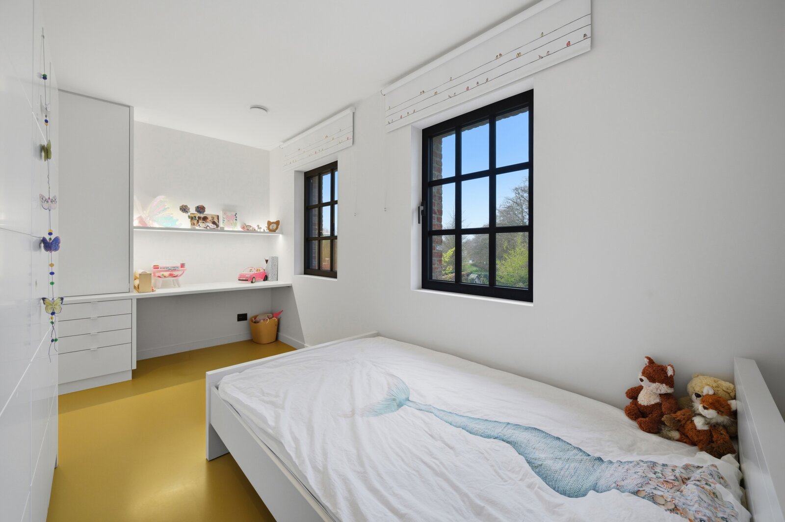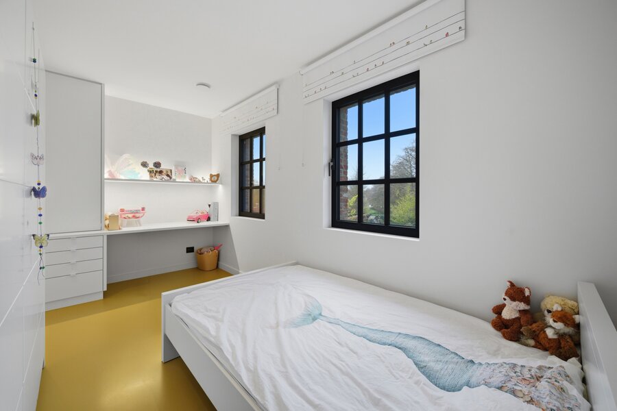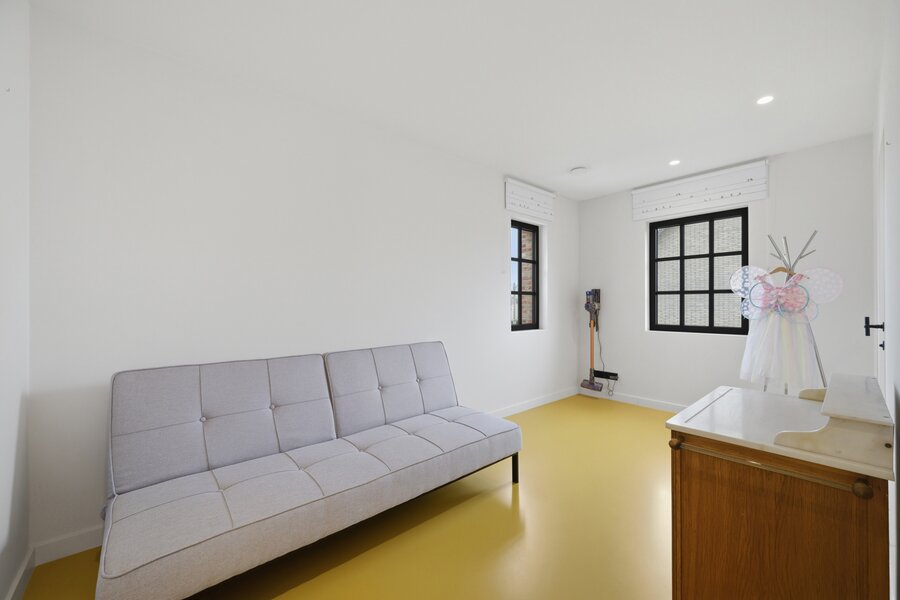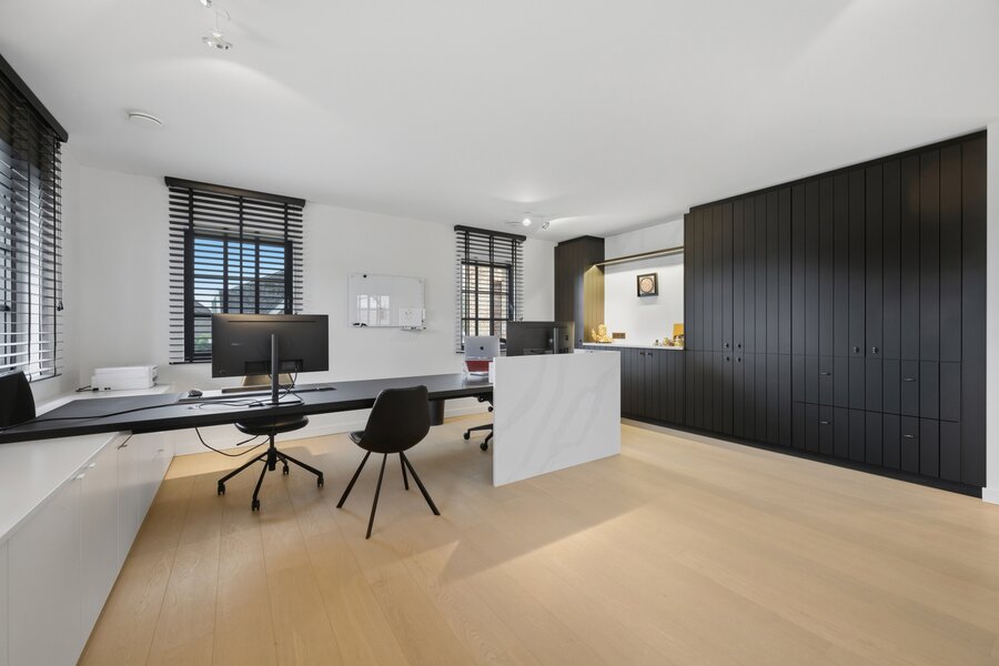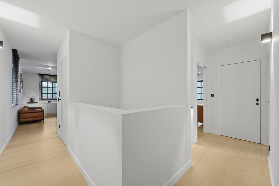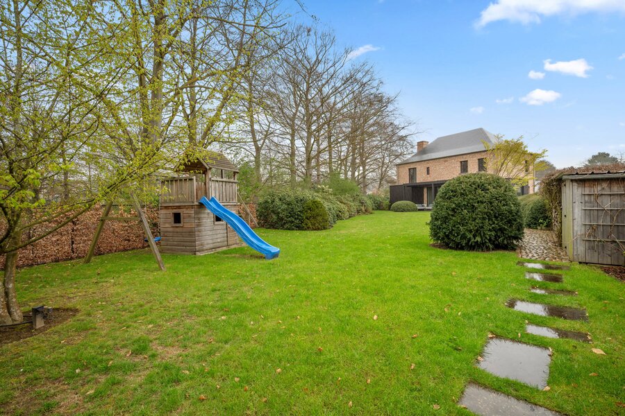 Op de eerste verdieping leidt de nachthal naar twee comfortabele kinderslaapkamers met een eigen doucheruimte en toilet. De master bedroom is een echte troef, met een dressing en een luxueuze badkamer uitgerust met ligbad, inloopdouche, lavabo en toilet. Daarnaast is er nog een bijzonder ruime bureauruimte, die perfect kan dienen als extra slaapkamer.