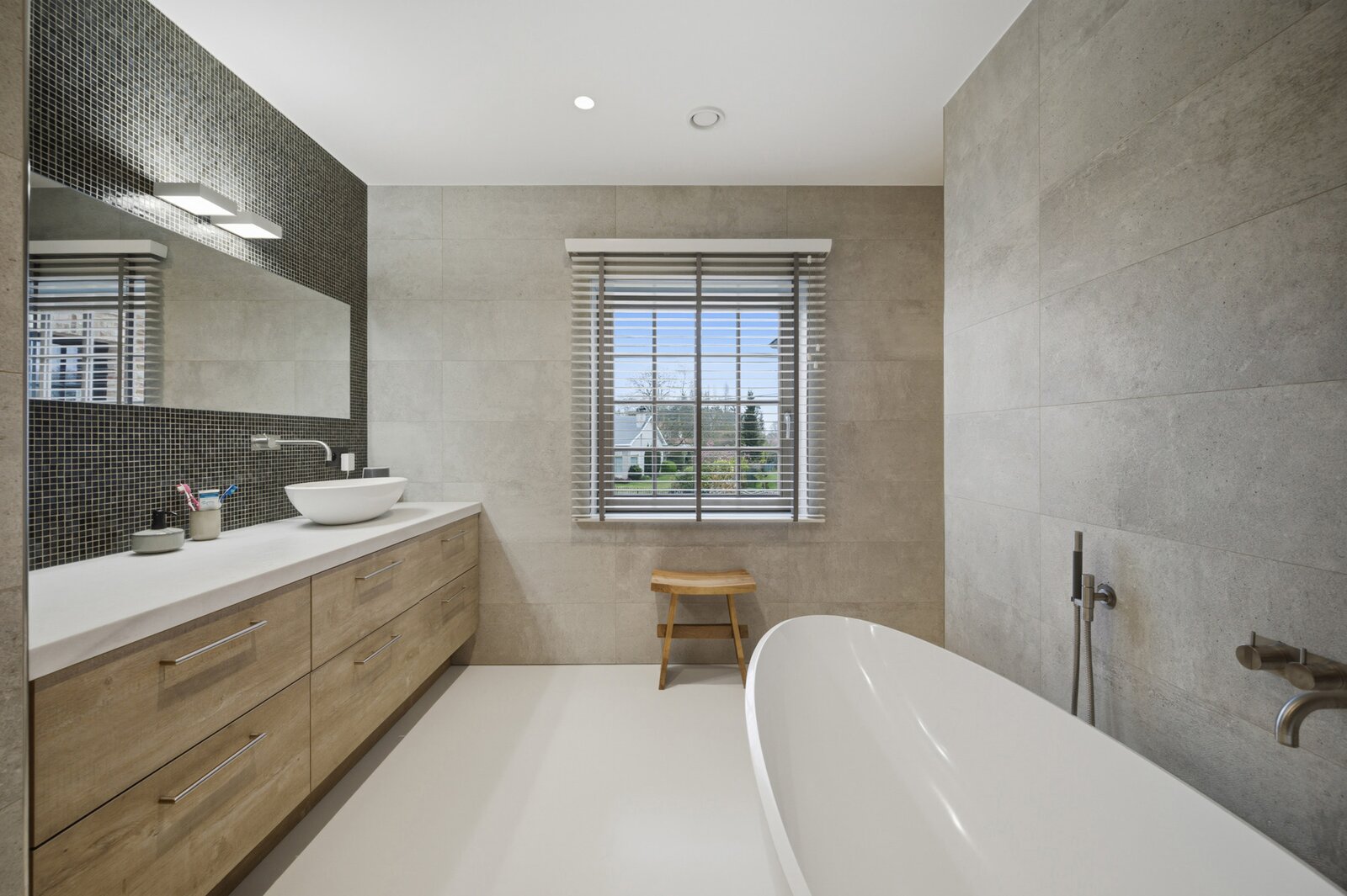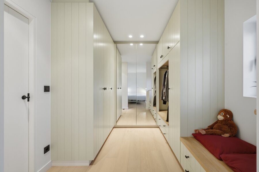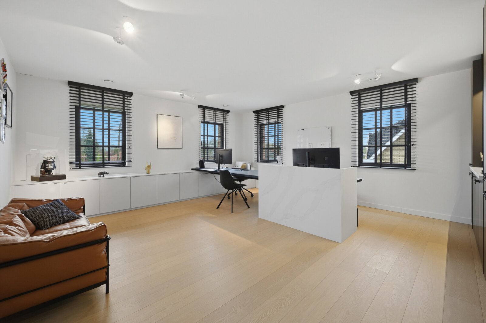 Op de eerste verdieping leidt de nachthal naar twee comfortabele kinderslaapkamers met een eigen doucheruimte en toilet. De master bedroom is een echte troef, met een dressing en een luxueuze badkamer uitgerust met ligbad, inloopdouche, lavabo en toilet. Daarnaast is er nog een bijzonder ruime bureauruimte, die perfect kan dienen als extra slaapkamer.