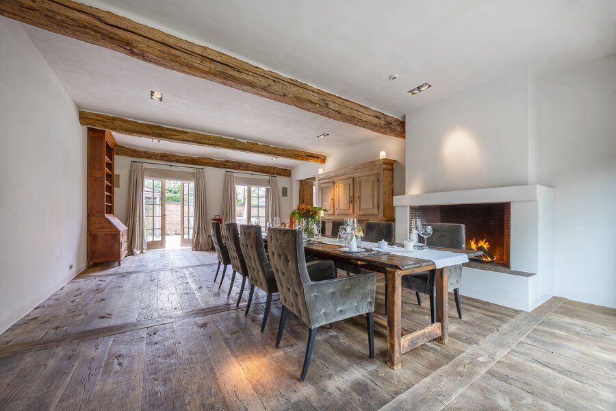 De woning biedt royale leefruimtes met veel lichtinval, waaronder een gezellige woonkamer met gashaard en zicht op de tuin, een bureel of bibliotheek met maatkasten en een sfeervolle eetkamer die aansluit op de volledig uitgeruste keuken. Deze keuken beschikt over topapparatuur zoals een Lacanche fornuis, Quooker, Gaggenau toestellen en een Miele stoomoven. Aansluitend bevindt zich een ruime bijkeuken. In totaal zijn er 6 volwaardige slaapkamers en meerdere badkamers, waaronder een master suite met dressing en luxueuze ensuite badkamer. Daarnaast zijn er extra ruimtes zoals een fitness, studeerkamers en een linnenkamer.