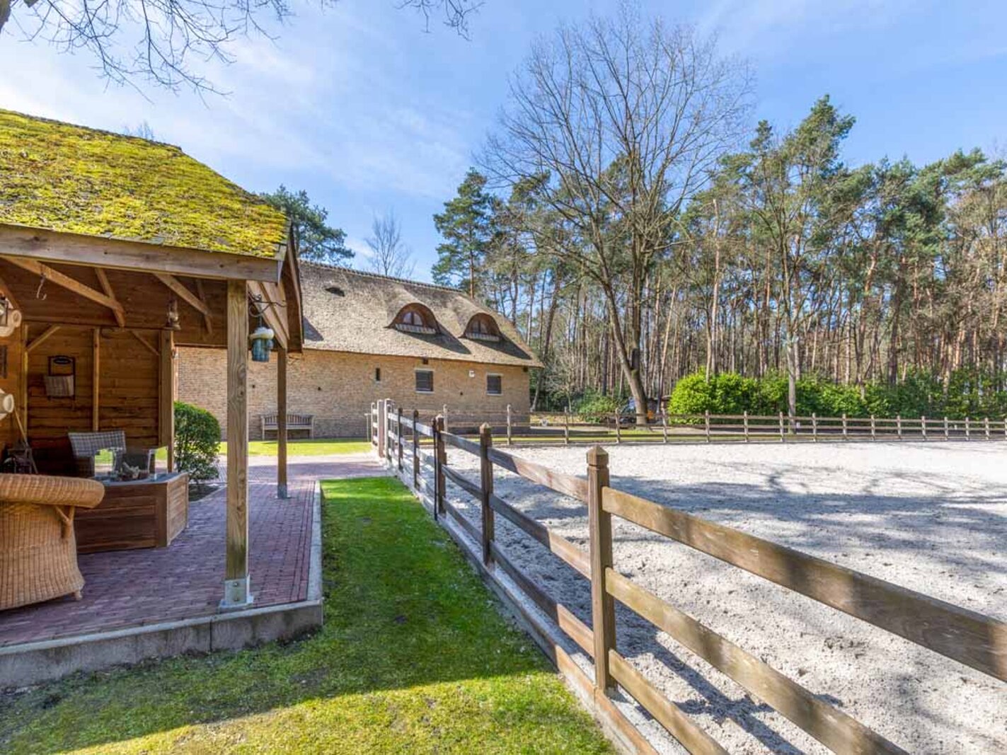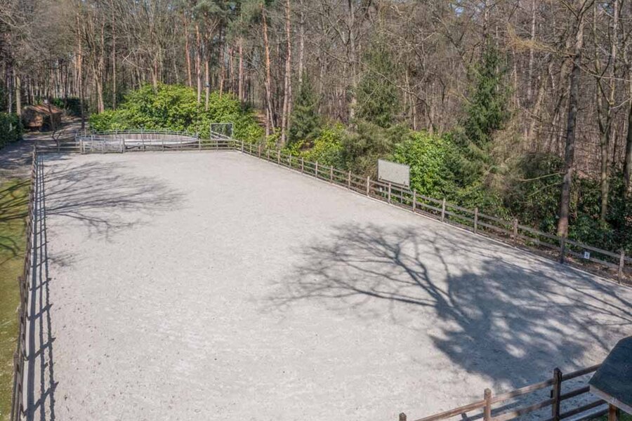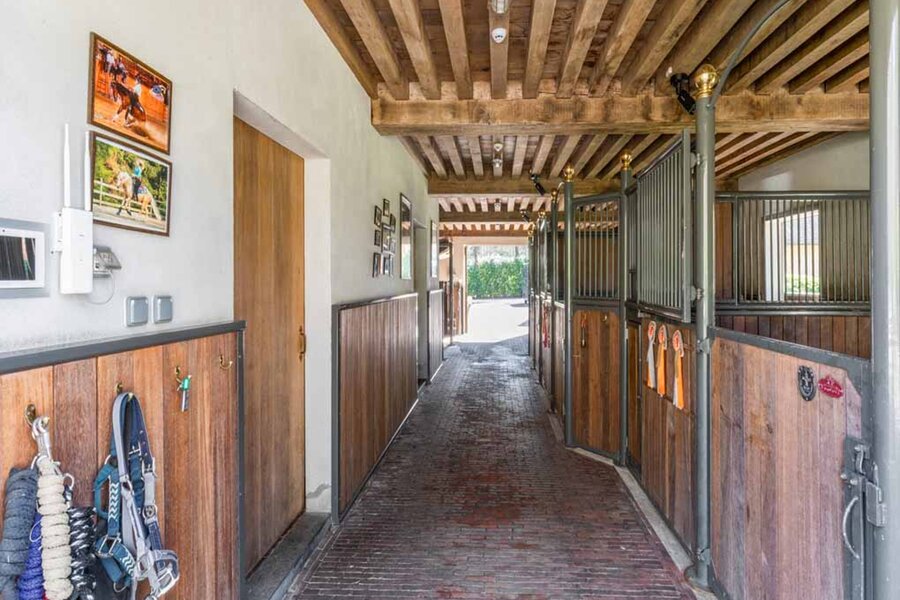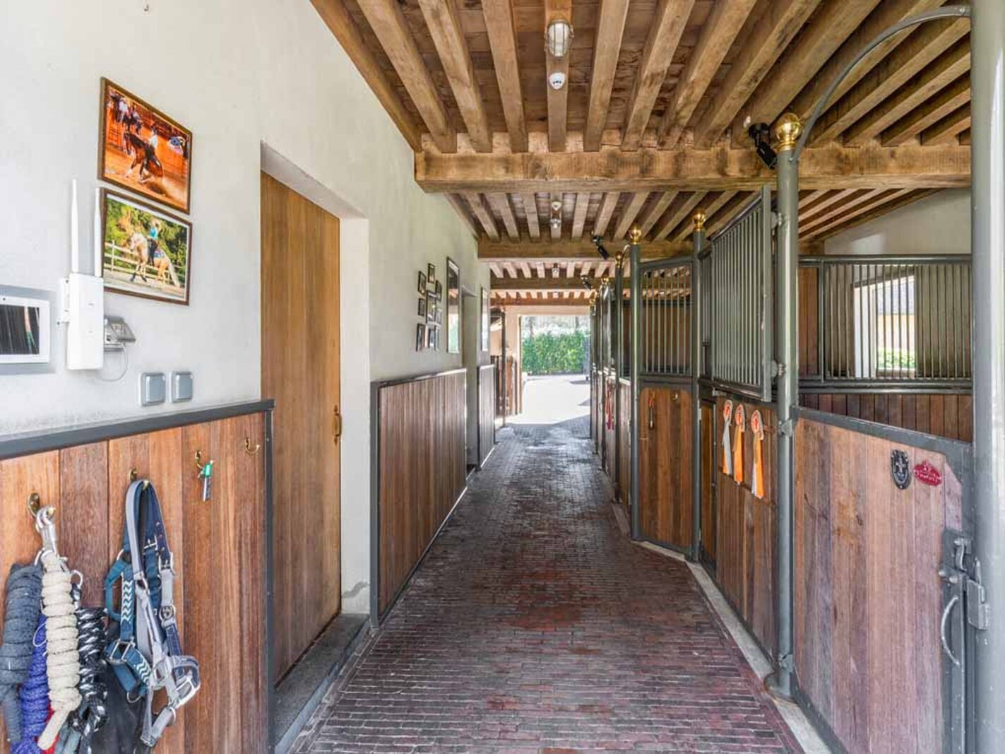 De paardenfaciliteiten zijn apart toegankelijk en omvatten twee stallencomplexen met in totaal 8 stallen, een wasplaats, solarium en verwarmde zadelkamer. Verder zijn er een gedraineerde buitenpiste, longeercirkel en circa 6 hectare weiland met bijkomende buitenstallen.