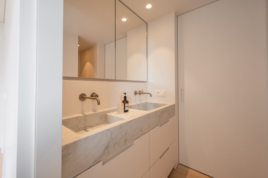 Exclusief te koop: Prachtig en stijlvol gerenoveerd appartement met drie slaapkamers, gelegen in het Zoute, en genietend van zeezicht. Deze uitzonderlijke residentie bevindt zich op een topligging, op wandelafstand van gerenommeerde boetieks (waaronder Chanel, Obumex, ...), de Zeedijk en het strand. Indeling: Inkomhal met vestiaire en gastentoilet. De lichtrijke woon- en eetruimte baadt in natuurlijk licht en biedt directe toegang tot het terras met zeezicht. De open, hoogwaardige keuken is volledig uitgerust en beschikt over een gezellige ontbijthoek. De master bedroom is voorzien van op maat gemaakte inbouwkasten en een en-suite douchekamer (lavabo, toilet en inloopdouche). Tweede volwaardige slaapkamer, eveneens uitgerust met ingemaakte kasten en een bijkomende douchekamer. Derde slaapkamer. Het appartement beschikt over een privatieve kelder en een praktische fietsenberging op het gelijkvloers. Er is mogelijkheid tot aankoop van een vlot toegankelijke garagebox, geschikt voor twee ruime wagens. Voor verdere inlichtingen of het plannen van een bezoek nodigen wij u graag uit contact op te nemen met Knokke Real Estate.