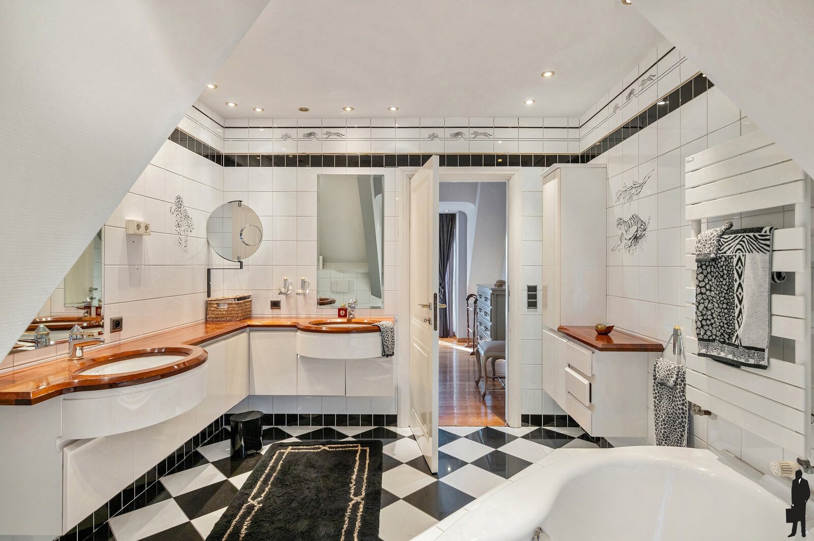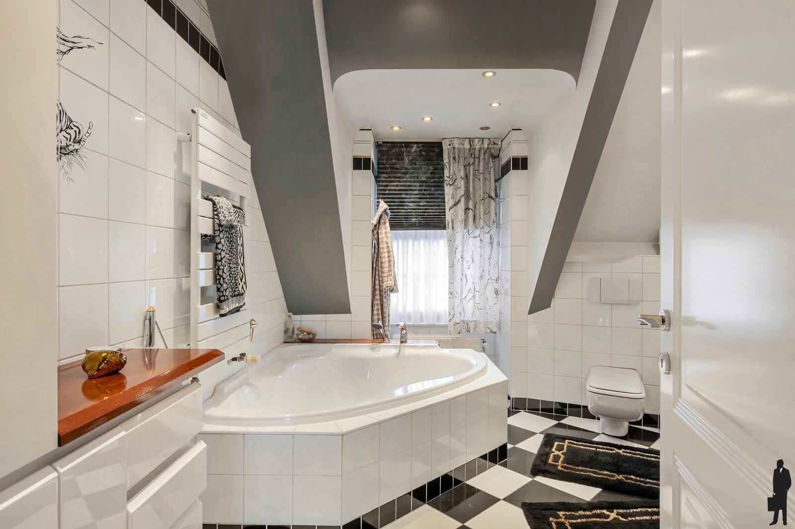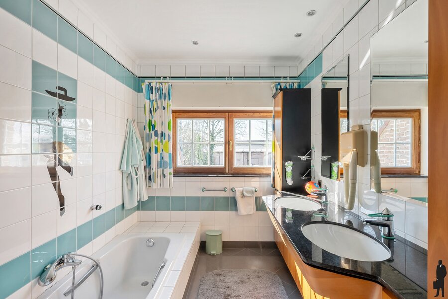 Tweede badkamer met ligbad en dubbele lavabo