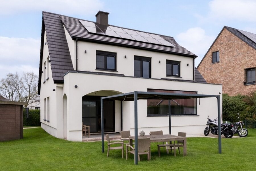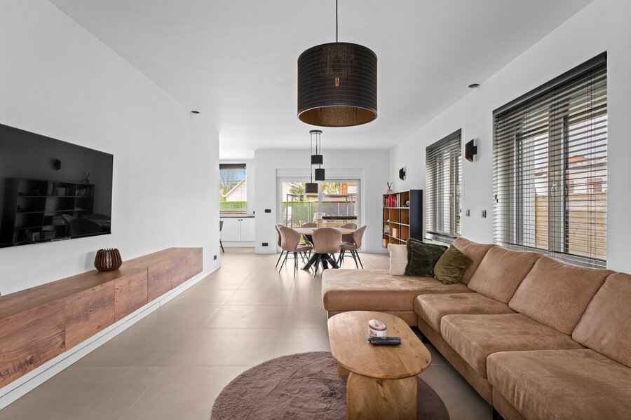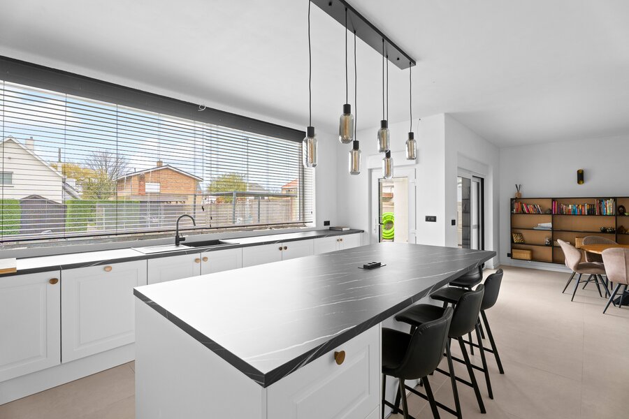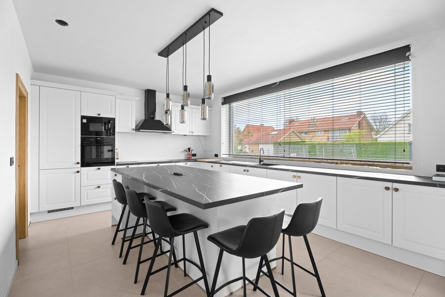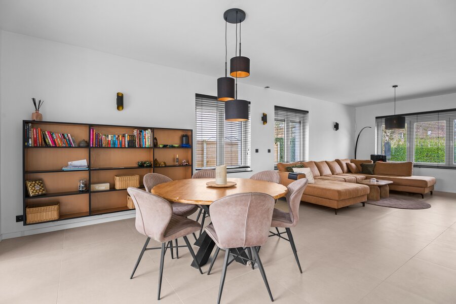 Binnenin geniet u van een lichtrijke leefruimte, een volledig uitgeruste keuken en een praktische indeling met 5 volwaardige slaapkamers, waaronder een bureau/slaapkamer op het gelijkvloers – ideaal voor thuiswerk of praktijk. De nachthal met ingemaakte kasten, ruime kamers en luxueuze badkamer zorgen voor een perfect gezinscomfort.