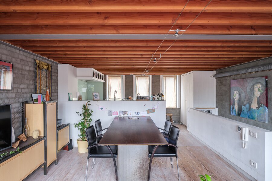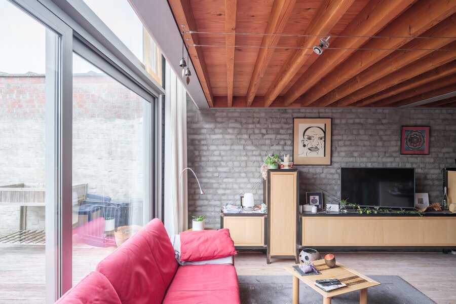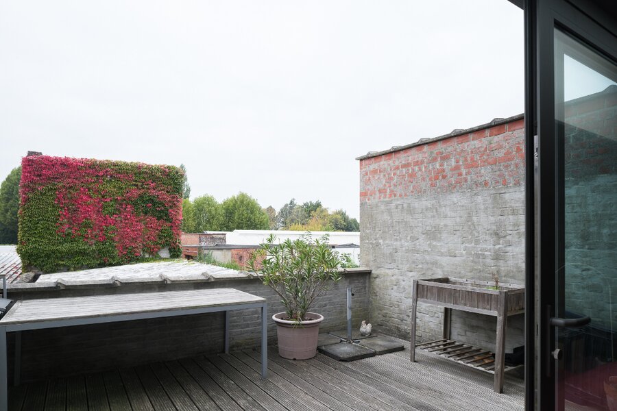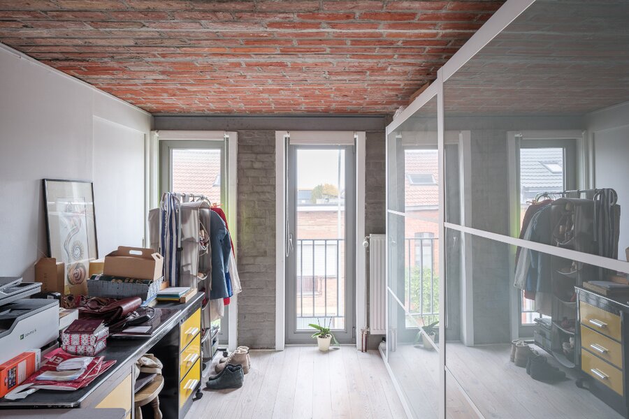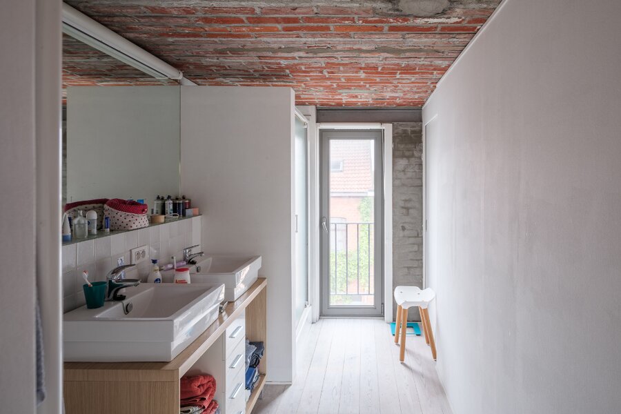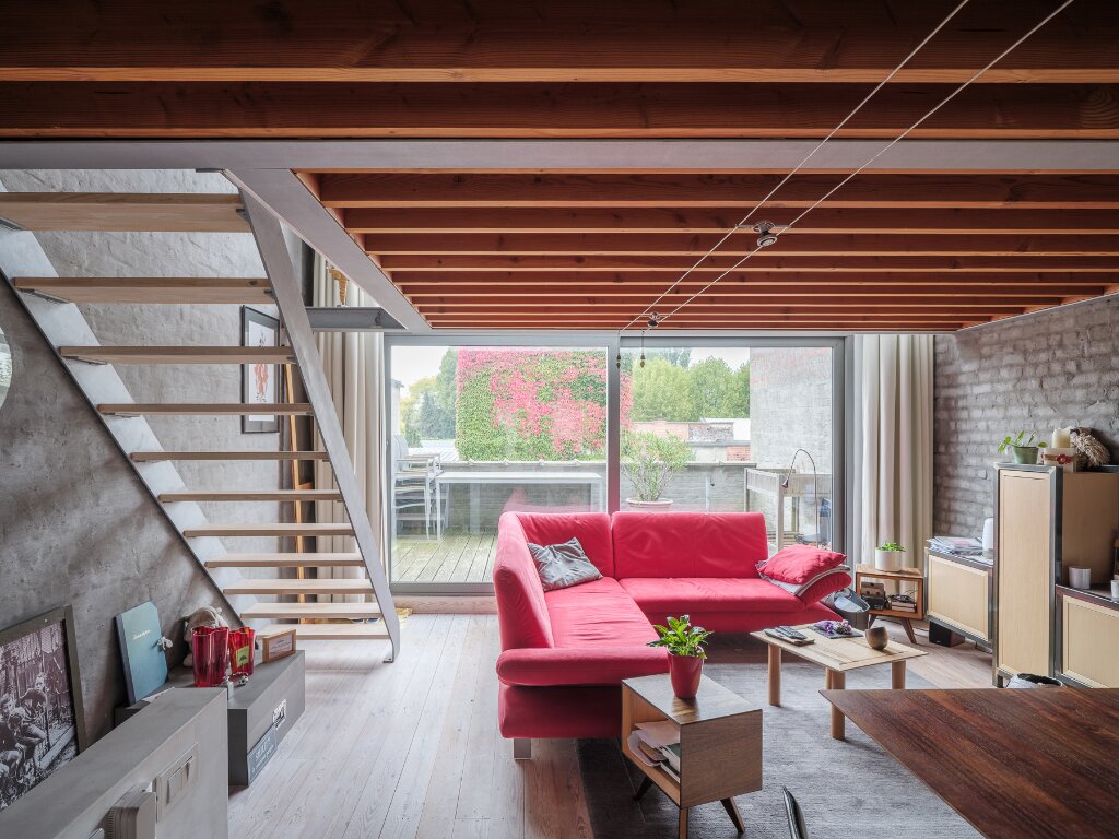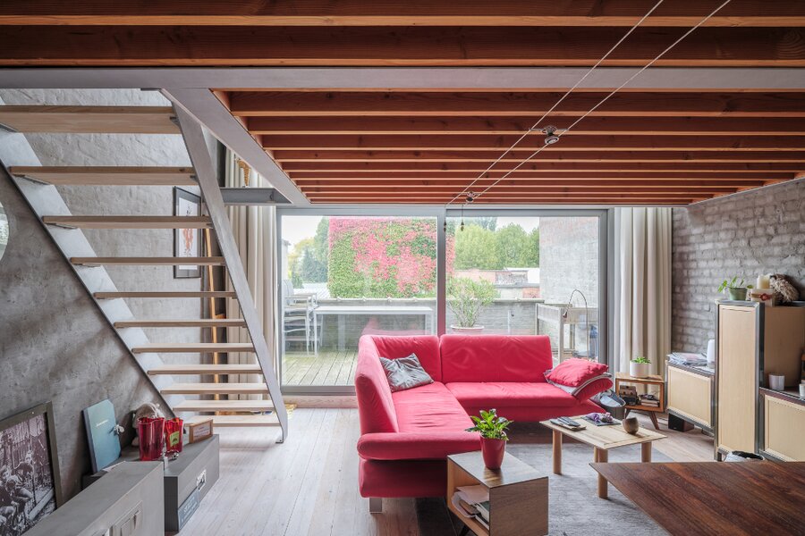 De duplex-loft (104 m2 bvo), met 1 slaapkamer en aangename buitenruimte is het woord ‘loft’ waardig. Industrieel karakter met hedendaags comfort dat resulteert in een EPC B. Deze loft is toegankelijk via de Emiel Lossystraat.