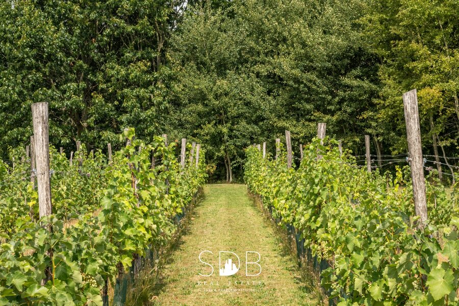Op het domein zelf geniet je van de charme en het uitzicht van een eigen wijngaard. De omliggende graslanden bieden bovendien tal van mogelijkheden, onder meer voor het houden van dieren of paarden. Een bijkomend open stalgebouw vervolledigt het geheel en is ideaal als overdekte opslagruimte voor materialen, machines of toebehoren.