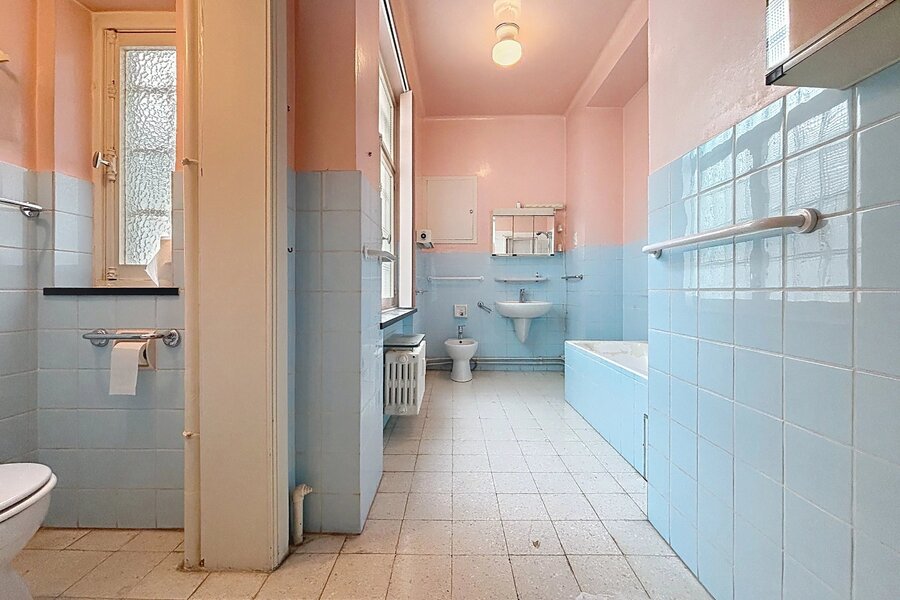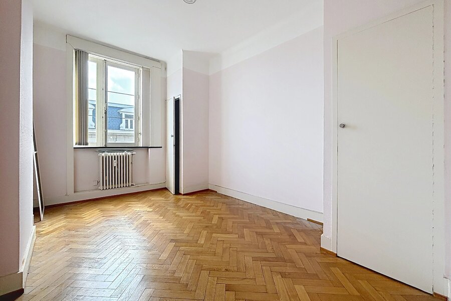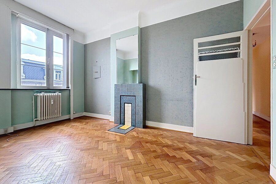 Apartment having preserved many original elements, to renovate, double exposure East and South, wooden frames, single glazing, beautiful ceiling height of 3m, cadastral income €2,478, PEB D.