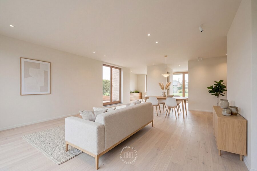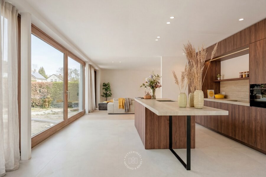 Bij het betreden van de woning word je meteen verwelkomd door een overvloed aan natuurlijk licht, wat zorgt voor een open en aangename sfeer. De ruime leefzone met grote raampartijen biedt een prachtig zicht op de tuin en versterkt het gevoel van ruimte. Hoogwaardige materialen, strakke lijnen en warme accenten geven het geheel een tijdloze en elegante uitstraling.