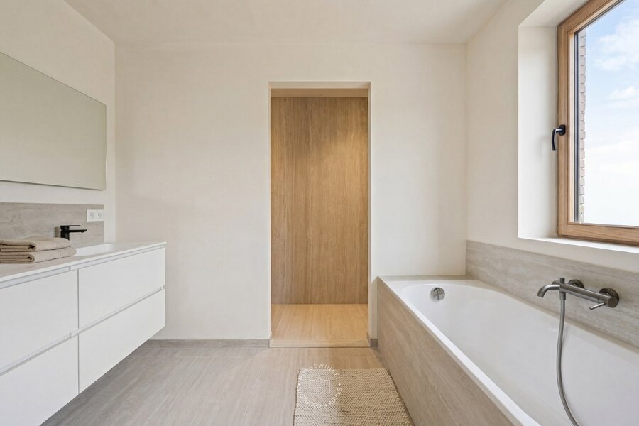 De woning scoort bovendien uitstekend op energiezuinigheid dankzij een lucht/water warmtepomp, 8 zonnepanelen, vloerverwarming en ventilatiesysteem D. Elk detail werd doordacht uitgewerkt, met oog voor zowel esthetiek als functionaliteit. De woning wordt verkocht onder het BTW-stelsel van 21%.