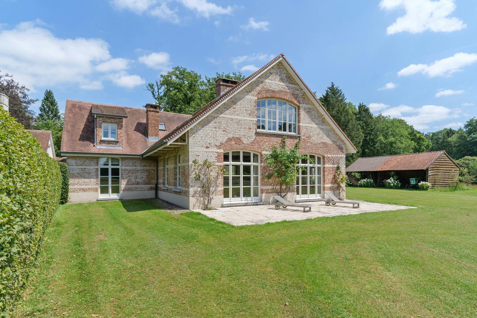 The location of this country house ensures maximum peace, quiet, and privacy, making it the ideal base for nature lovers. Every room offers impressive views of the lush greenery of the meadows and forests. Despite the serene setting, you are never far from necessary amenities; the proximity of the E34 guarantees easy access to Antwerp, while the N13 quickly takes you to Herentals.