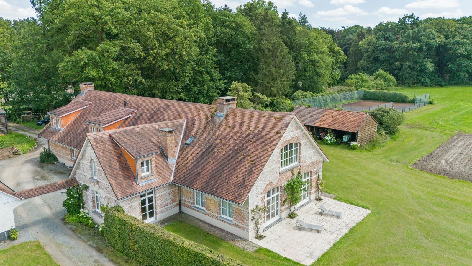 The country house is beautifully located in a privately-owned nature reserve of about 150 hectares, featuring grasslands, forests, and a pond complex. As the domain is not accessible to the public, this pristine piece of nature is a haven for protected species and allows for focused nature management and conservation efforts.