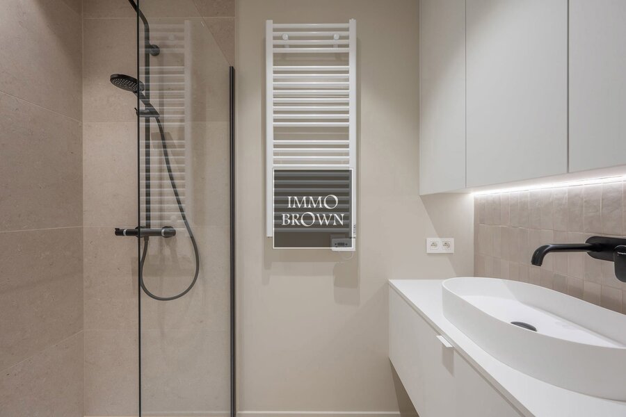 Newly built apartement situated on a prime location in Knokke with views on the Van Bunnenplein and the sea.