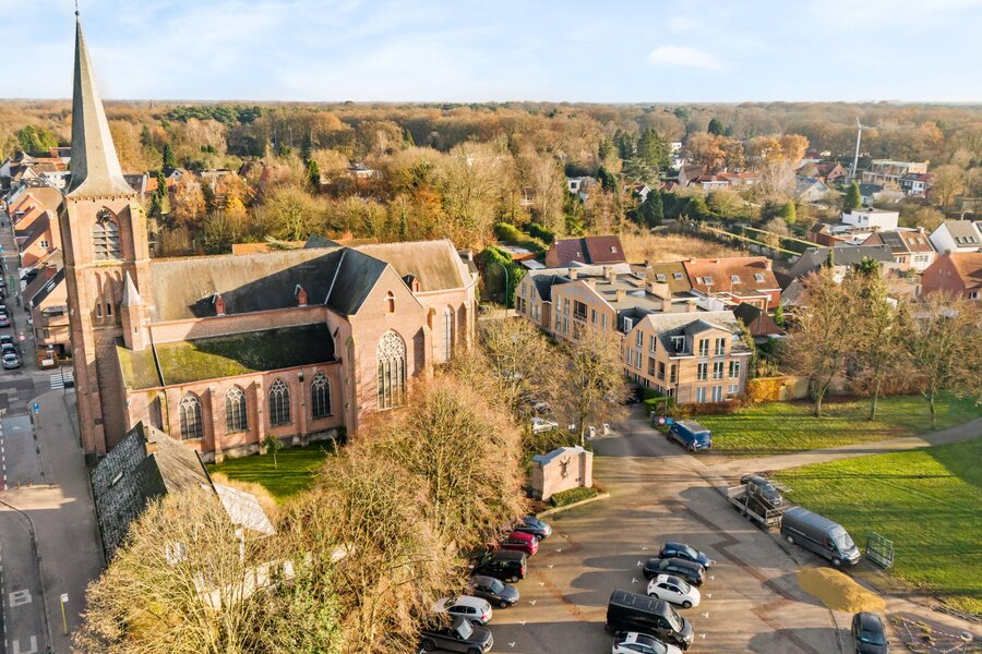 Zeer rustig gelegen in het midden van het dorp tegenover de kerk aan het Lodewijk de Vochtplein.