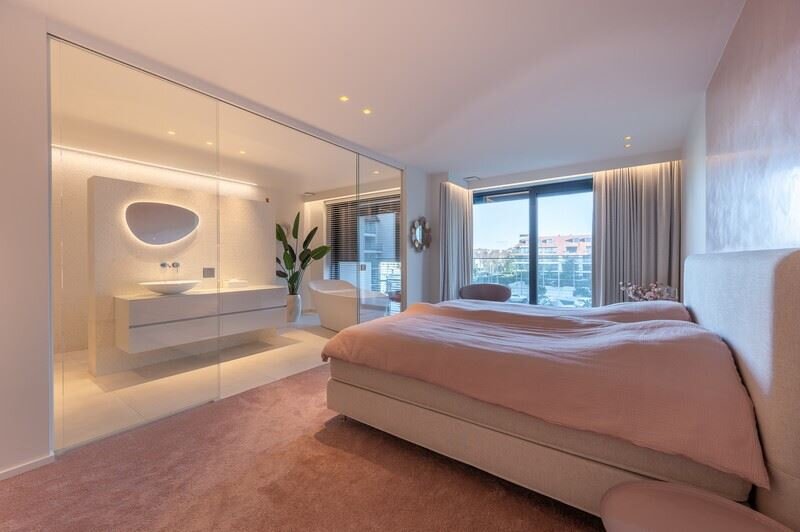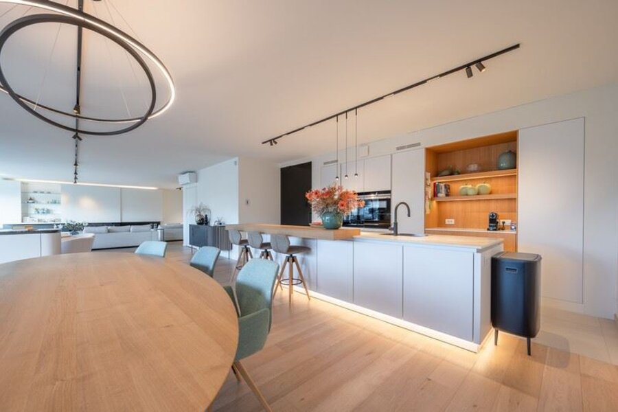 Uniek dubbel appartement gelegen in het pronkstuk van het Albertstrand . 300 m² met 3 à 4 slaapkamers en 70 m² terrassen . Façade van 16,5 meter met oost , zuid en west zon . Zeer luxueuze high-end top afwerking . Exclusief appartement met de ruimte van een villa .