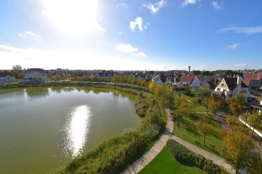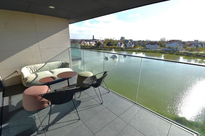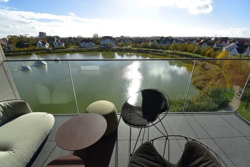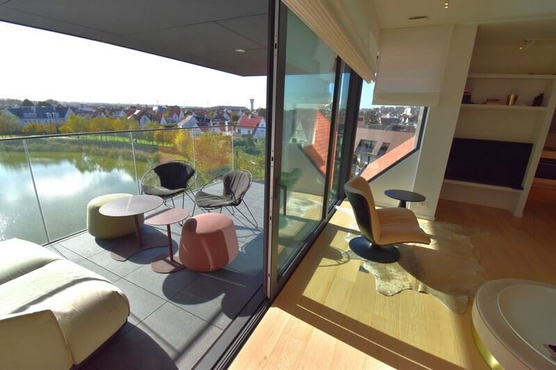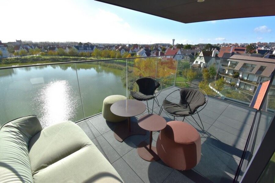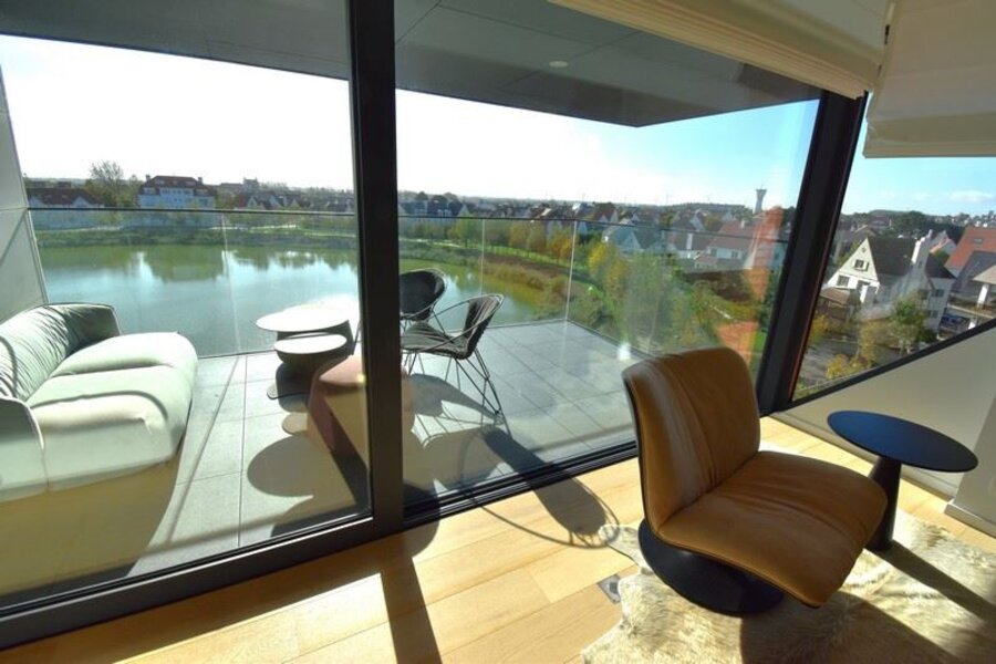 Uniek hoek-appartement met frontaal zicht op het Zegemeer . Luxueuze , moderne design met 3 slaapkamers . Zonnig terras met frontaal meerzicht en ook terras naar het westen . Mogelijkheid tot aankoop van een ruime garage-box .