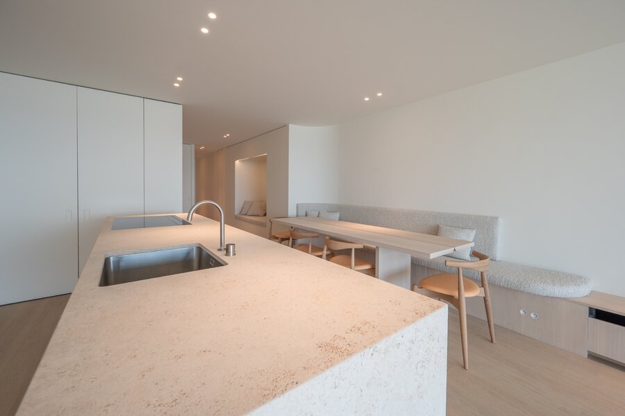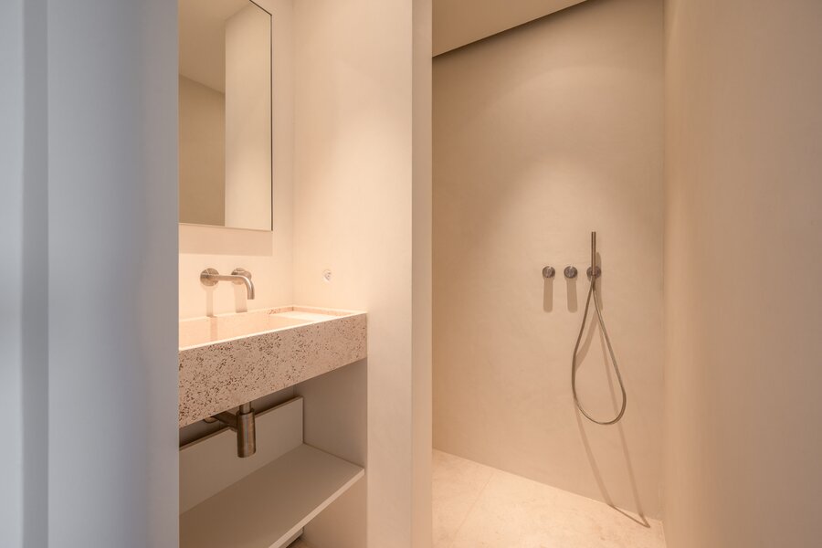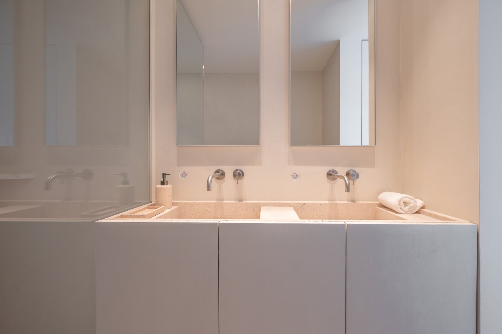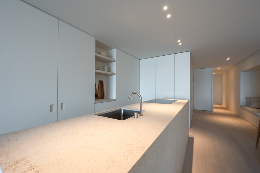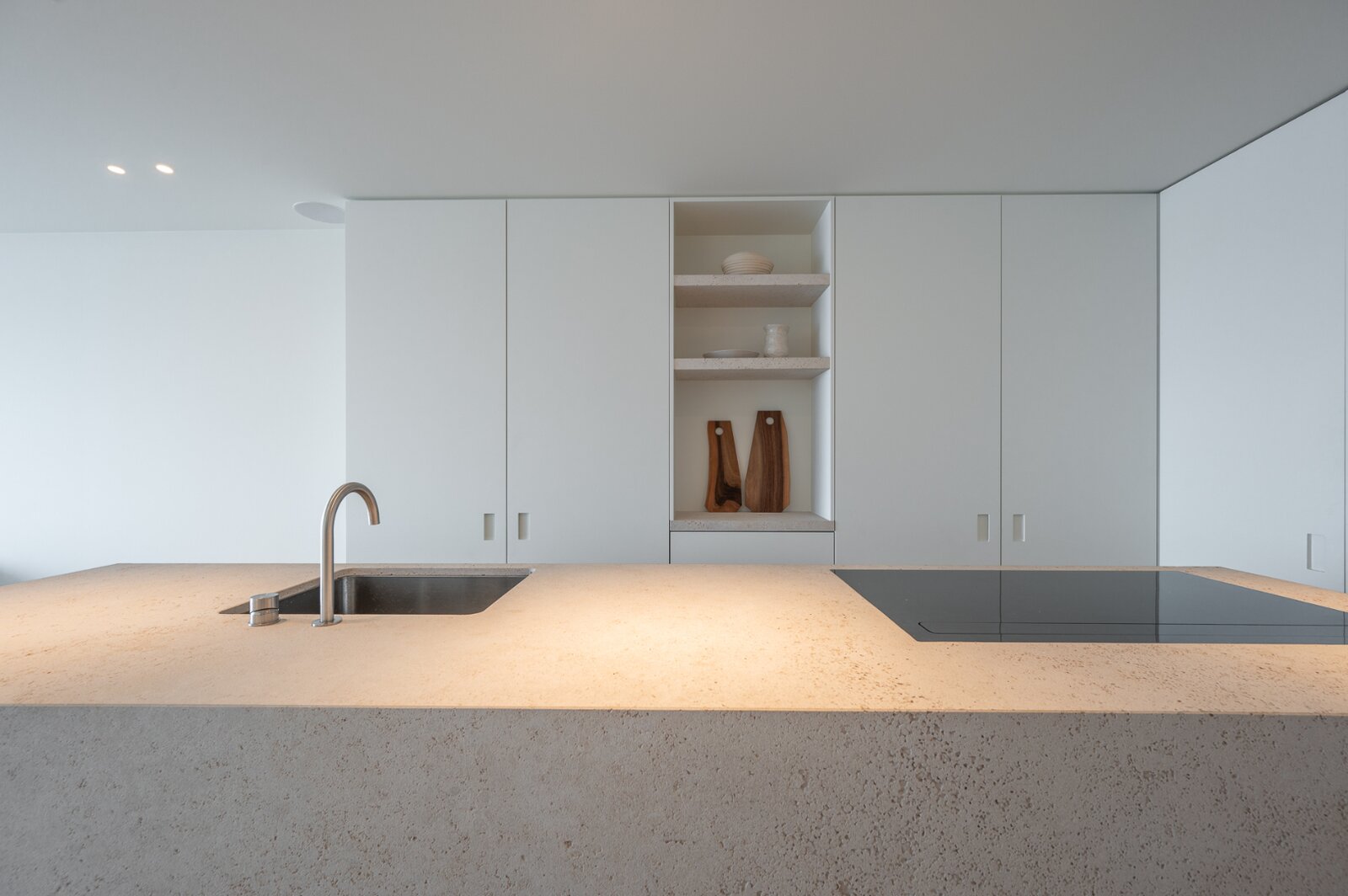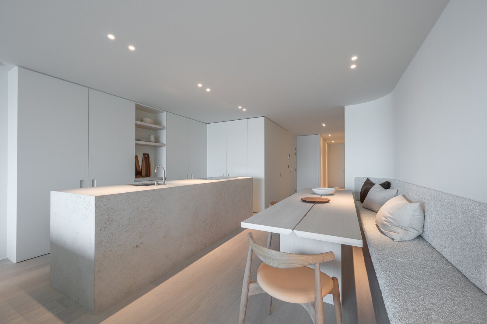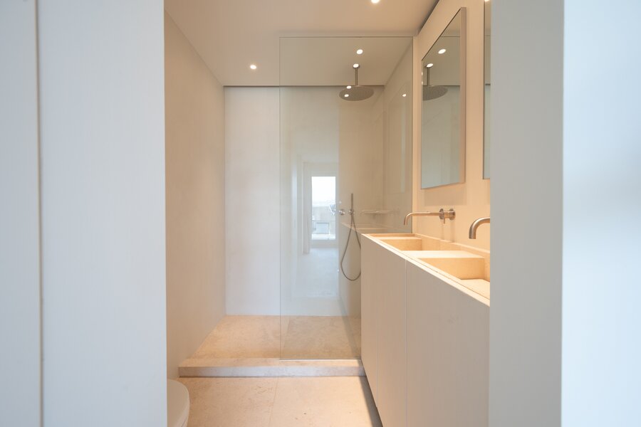 Entrance hall with checkroom and separate toilet. Bright living room opening onto the terrace on the Wandeldijk with frontal sea view. Spacious open kitchen with cooking island. Dining area with integrated sofa. Bedroom 1 with ensuite bathroom (shower, double sink and toilet). Bedroom 2 with ensuite bathroom (shower and single sink). Both bedrooms open onto a south facing terrace with open views of the greenery. Separate storage room available.