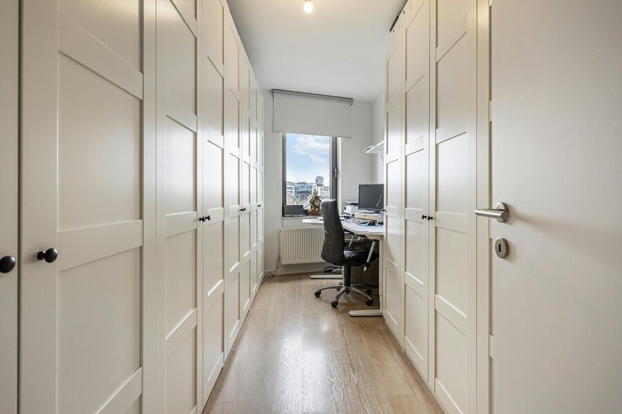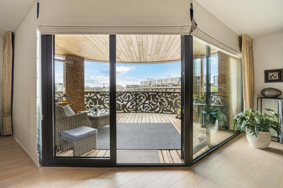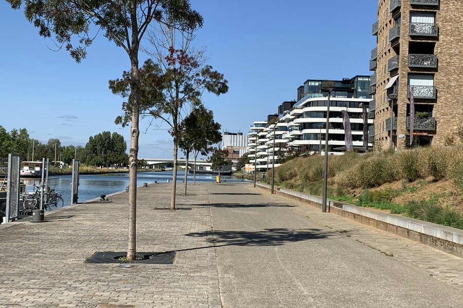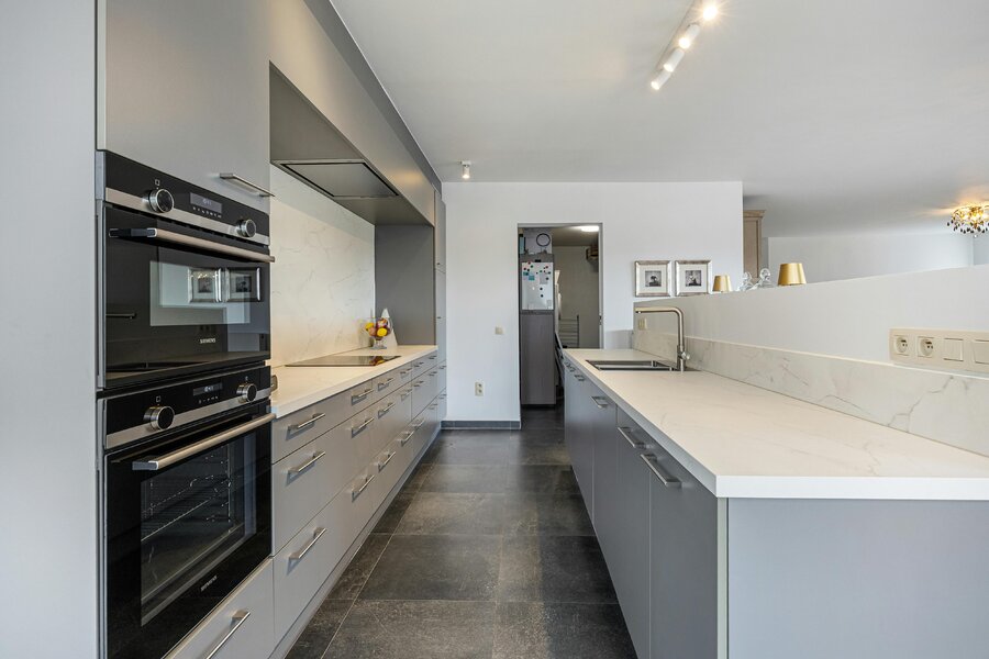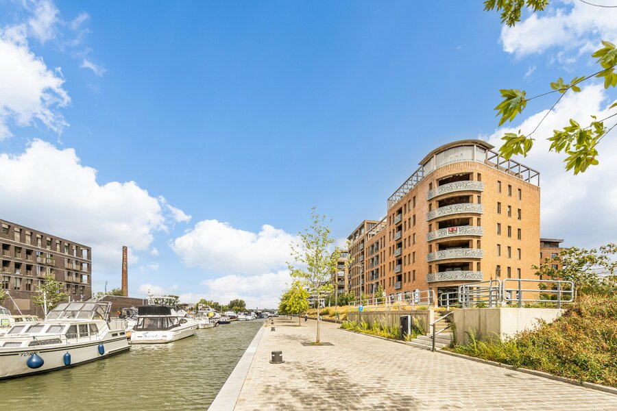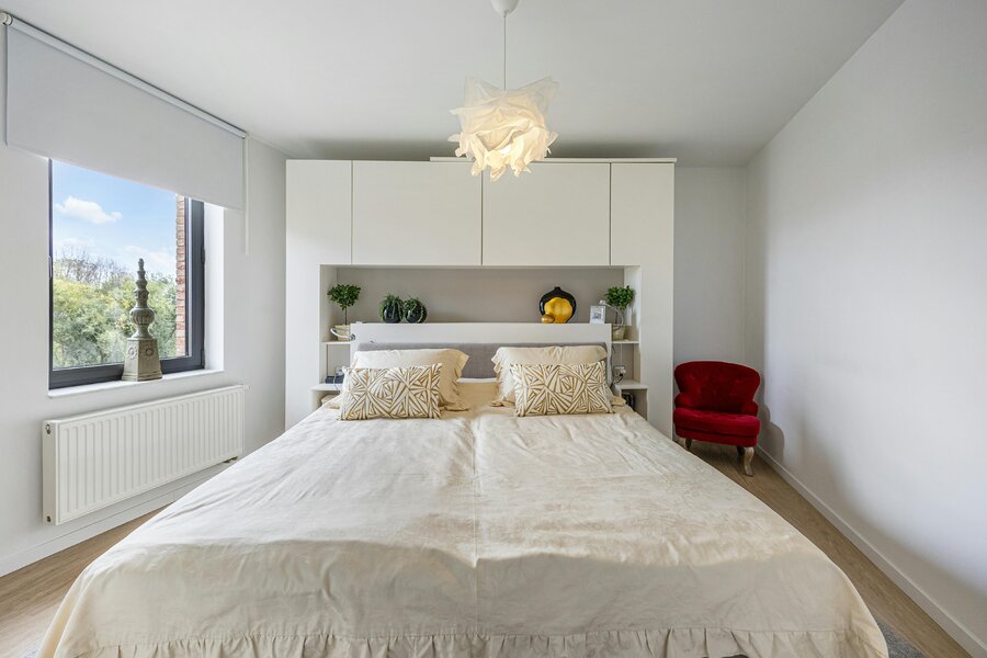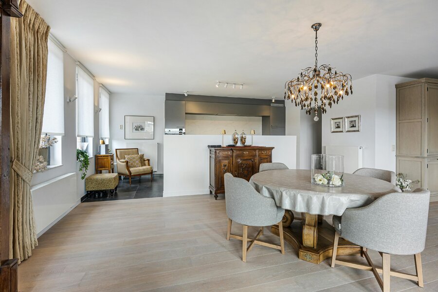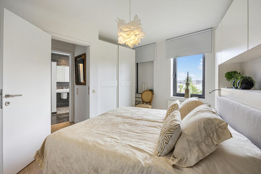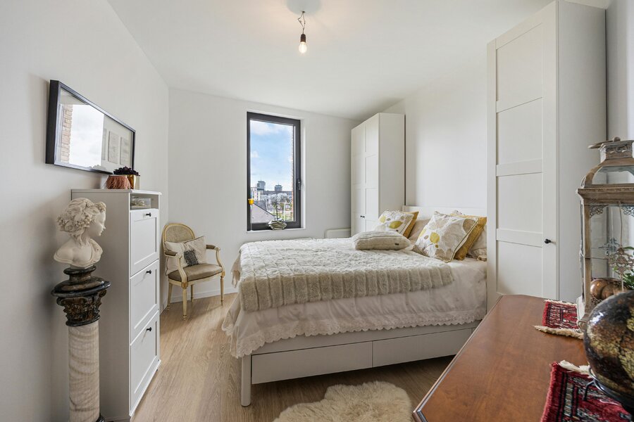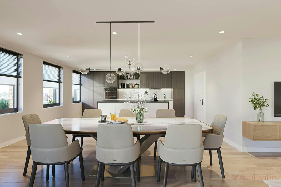 Unique apartment (168 m² gross, 3rd floor, elevator) + waterfront sun terrace (23 m²) with an underground car park a stone's throw from Hasselt center with a view of Quartier Bleu.