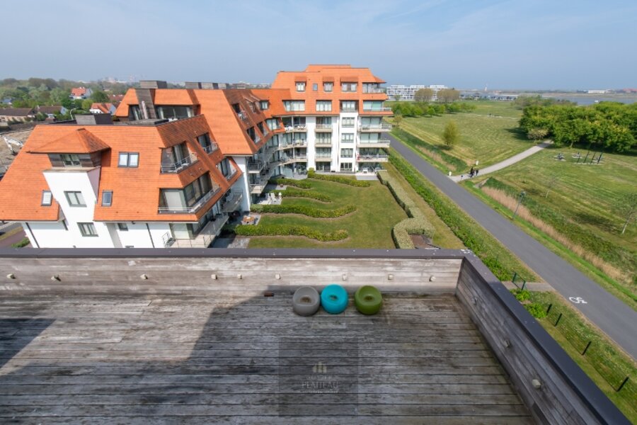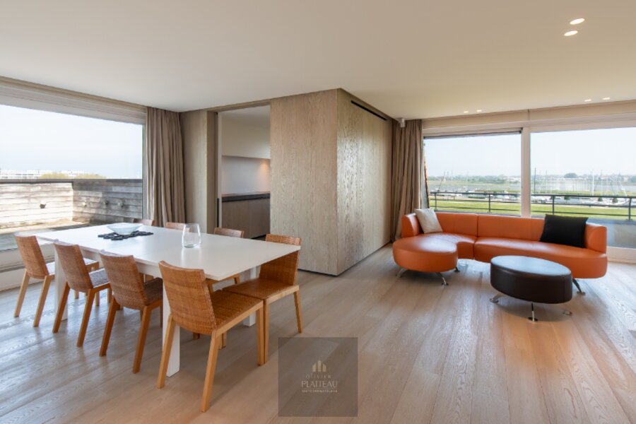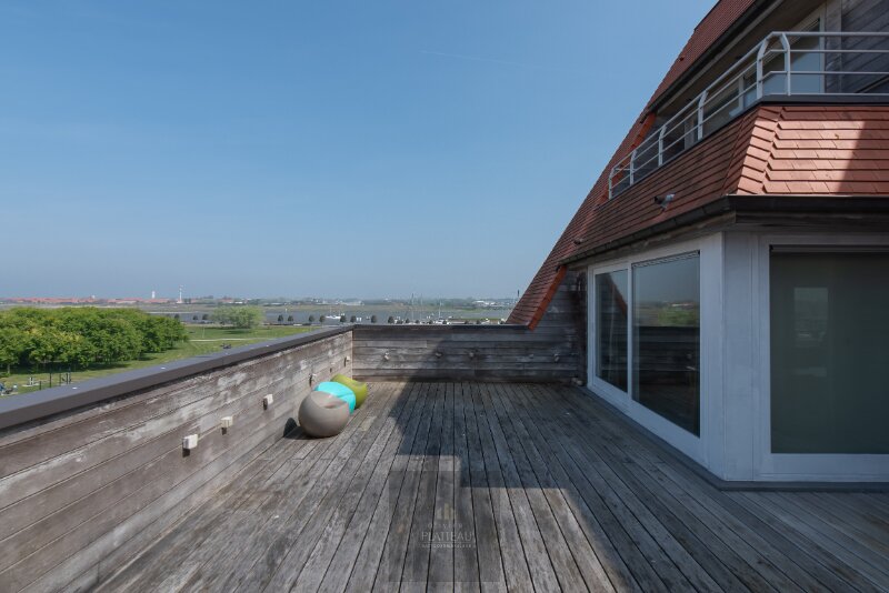 Located on Albert-I-Laan between Nieuwpoort-Bad & Nieuwpoort-Stad is this unique duplex rooftop apartment combining luxury, space and unparalleled views. With a generous living area and multiple terraces, this property offers an exclusive living experience with panoramic views of the Maritime Park, the harbor channel, the marina and the nature reserve De Ijzermonding. This apartment excels with its exceptional outdoor spaces. The very large, sun-oriented roof terrace is a real asset, ideal for quietly enjoying the phenomenal view. There is also a terrace off the living room, perfect for a relaxing coffee moment, and additional sun-oriented terraces off the bedrooms, giving each room a direct connection to the outdoors.