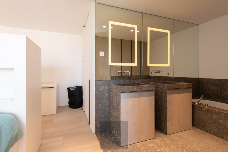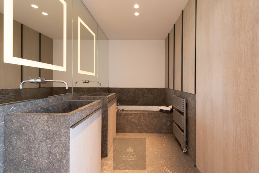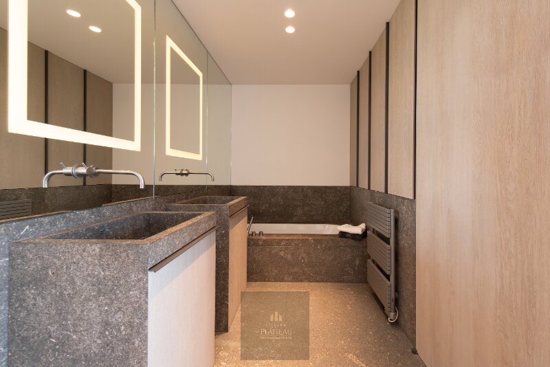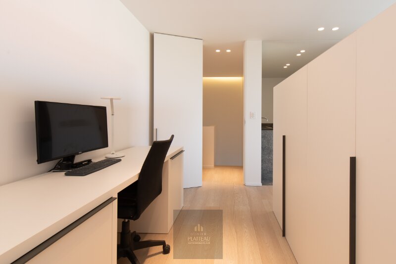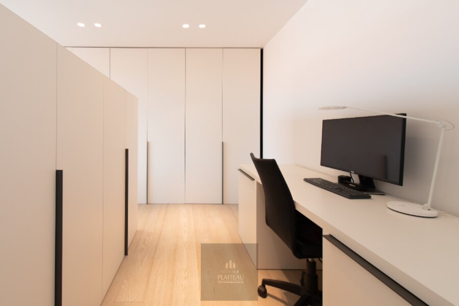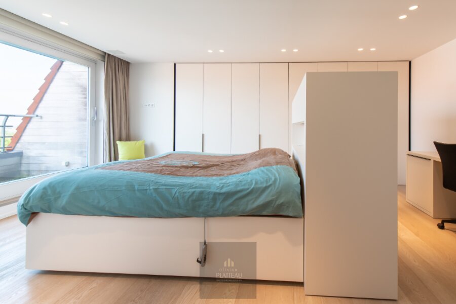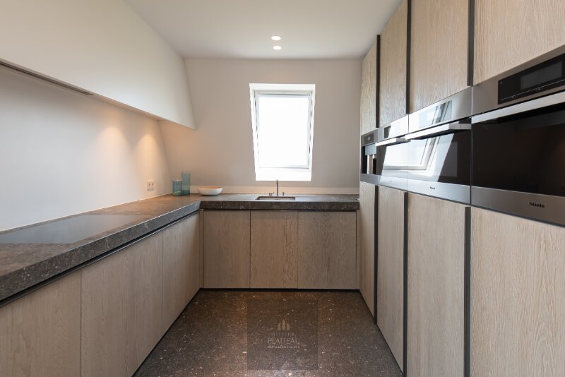 Layout: entrance hall, separate toilet, separate storage room, bright living room opening onto the front terrace and large roof terrace, luxury kitchen with solid granite top complete with Miele appliances such as steam oven, microwave, oven and coffee machine, 2 spacious bedrooms with fitted wardrobes with private bathroom with sink and separate shower, On the 5th floor we find the master bedroom complete with fitted wardrobes, separate office, 2nd bathroom with double sink and bathtub as well as a separate toilet.