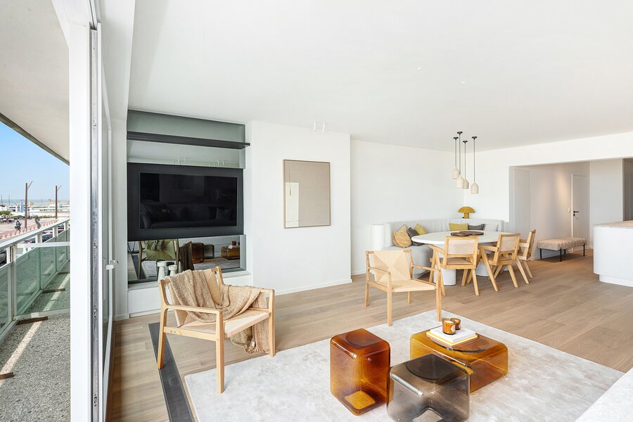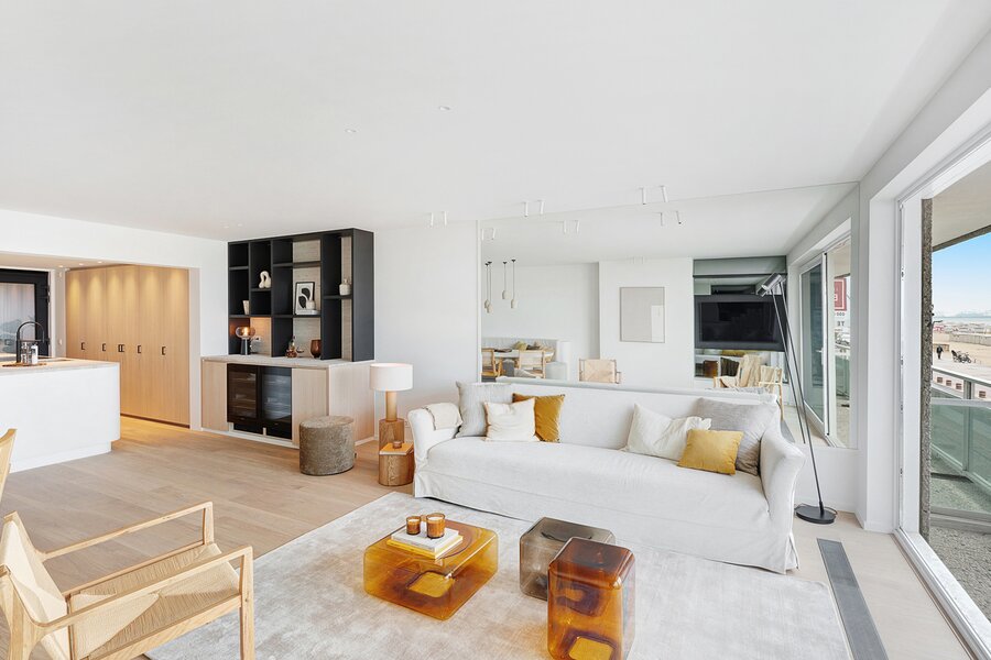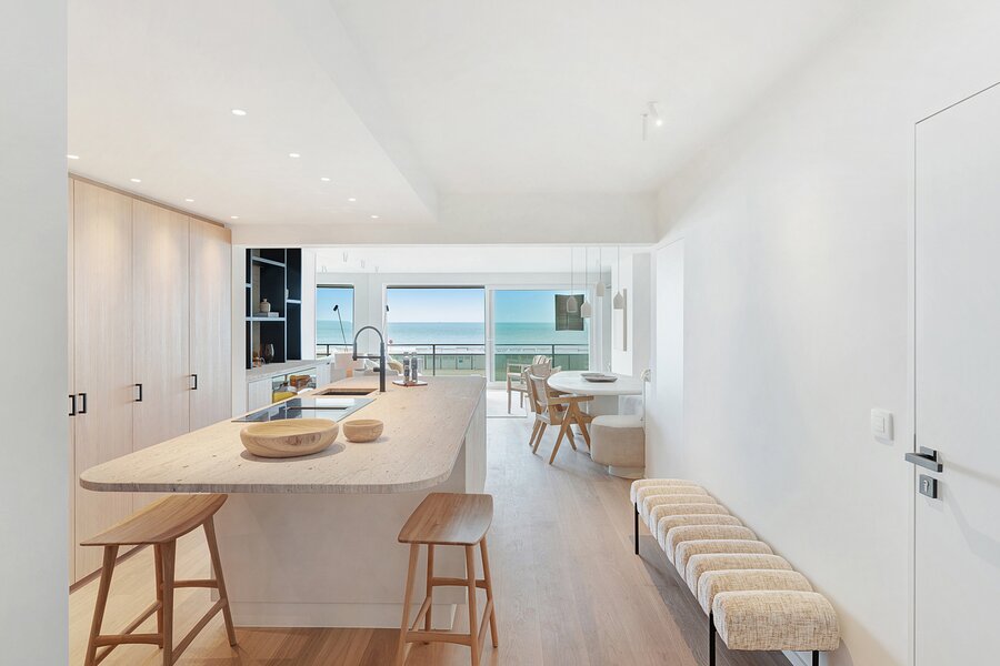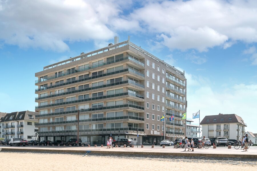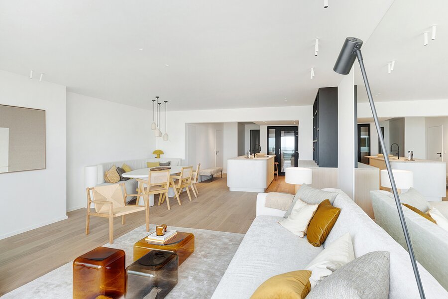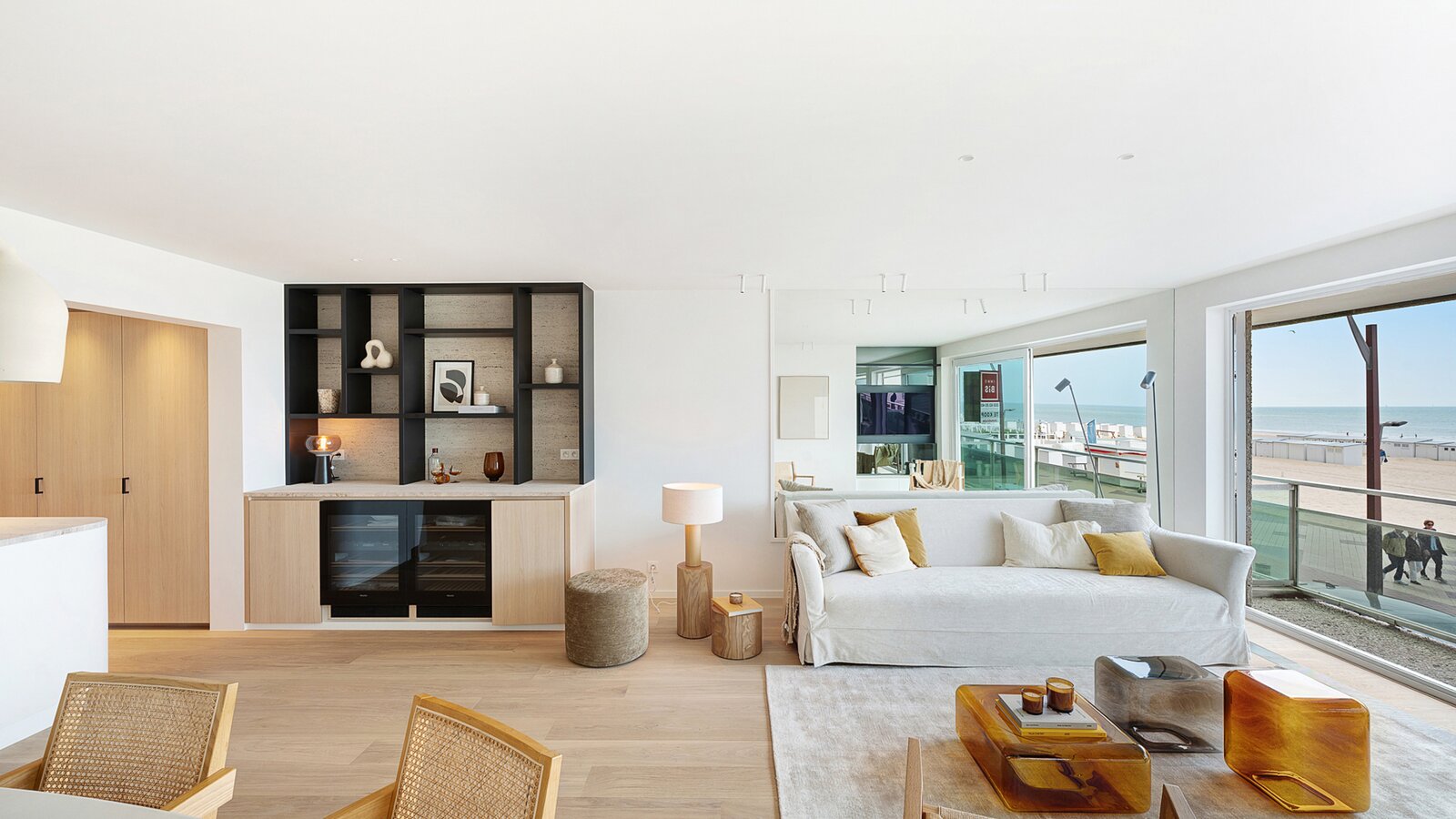 Magnificent apartment located on the 1st floor of a standing residence on the seafront in the Zoute, with a frontage width of 5.20 meters and a unique frontal sea view.