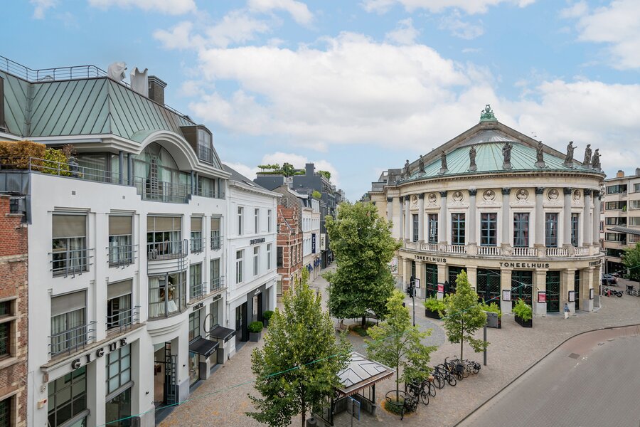 Located between the Schuttershofstraat with its many exclusive boutiques and the galleries on Leopoldstraat, this apartment offers a stunning view of the Bourla Theatre and the surrounding square. Via the Frankrijklei, one can quickly get in and out of the city. In short, an optimal combination of living and working in the city! Possibility to rent parking spaces within 100m walking distance. Immediately available.